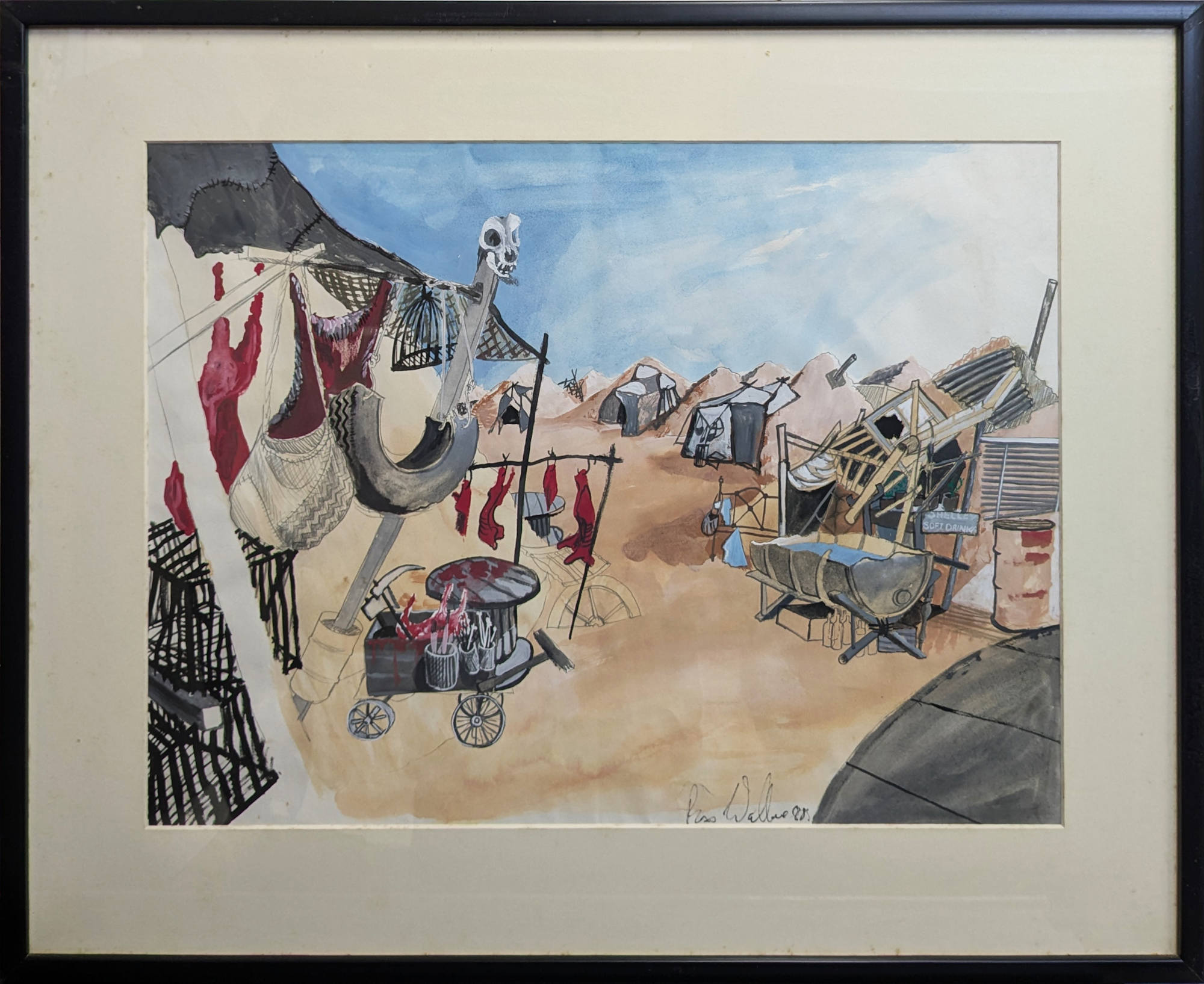 This set design original work on paper has been gifted to the Mendocino Art Center by David Webb Peoples, the writer and director of The Salute of the Jugger. This is a one of kind illustration.