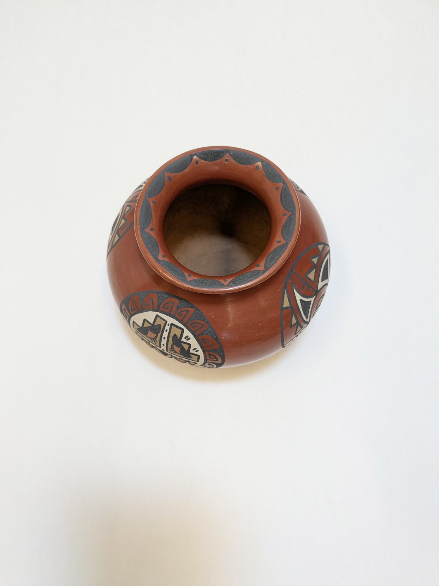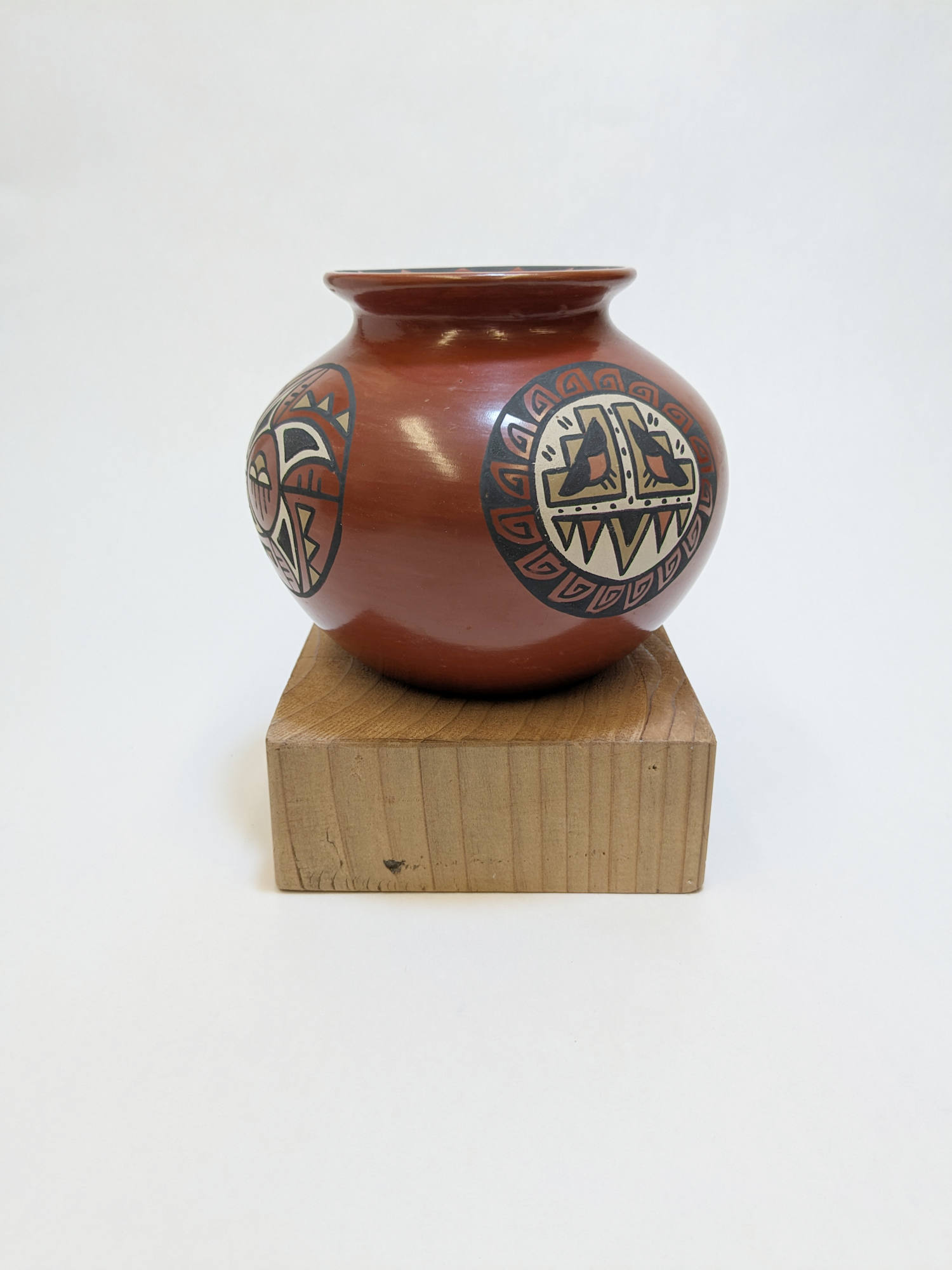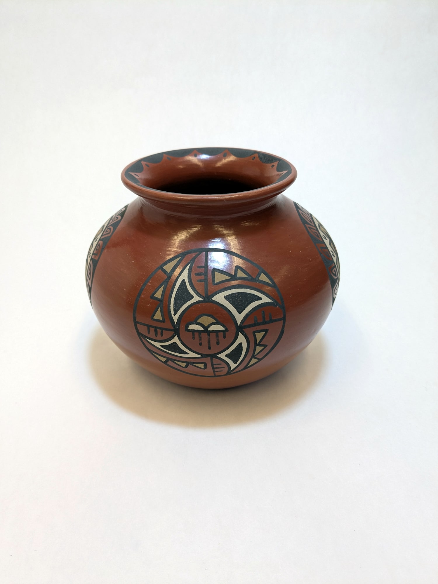 - Subject Matter: Polychrome four medallion Pojoaque style jar