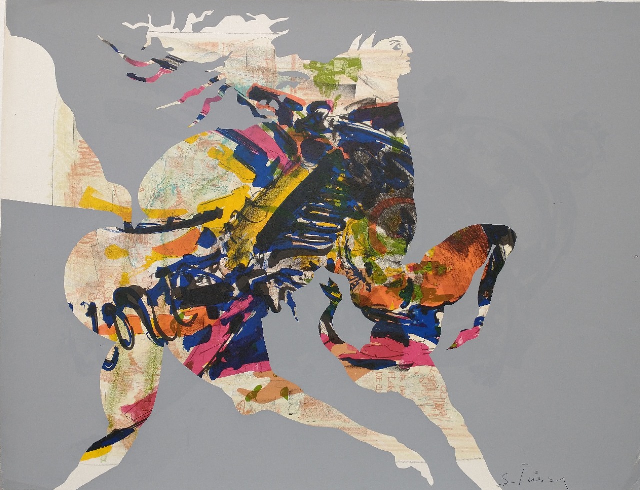 - Signature: Signed in lower right on serigraph side that shows abstract horse and rider