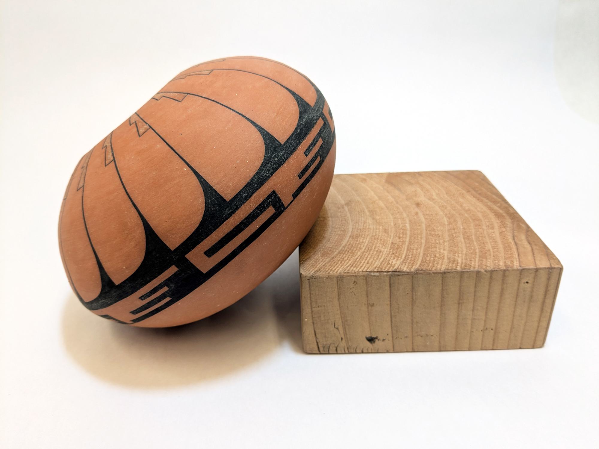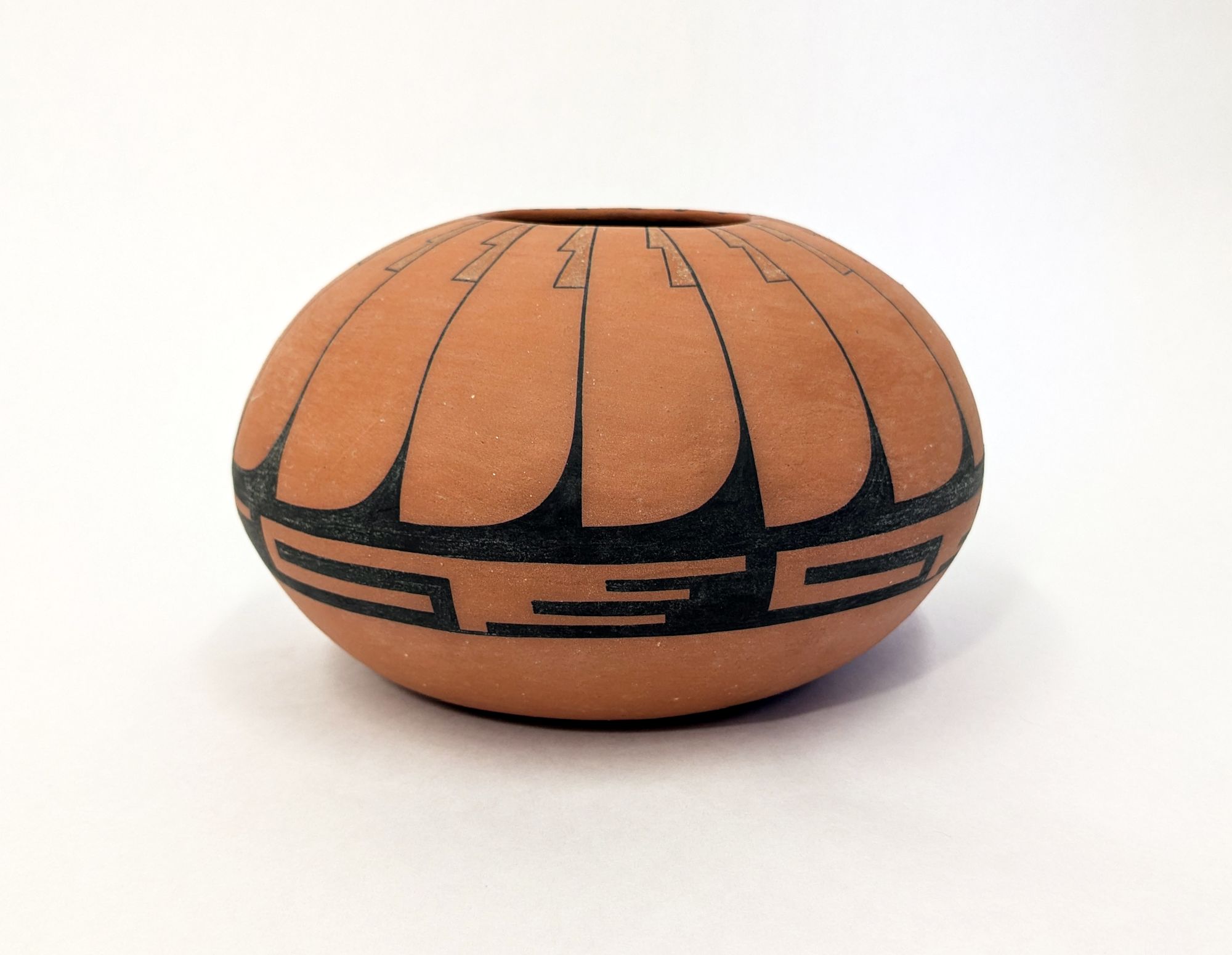 This beautiful Terracotta flattened seed jar was part of a generous donation to the Mendocino Art Center in 2023 by Daniel Pagano, PhD.