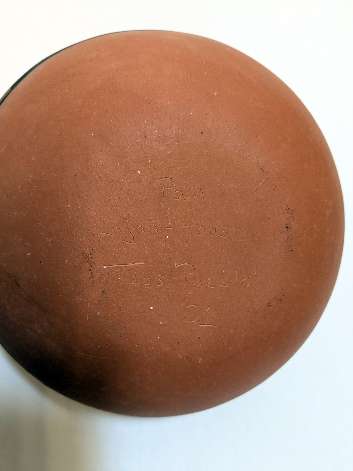 - Signature: Pan Lujan-Hauer, Taus Pueblo '01 is cut into bottom
