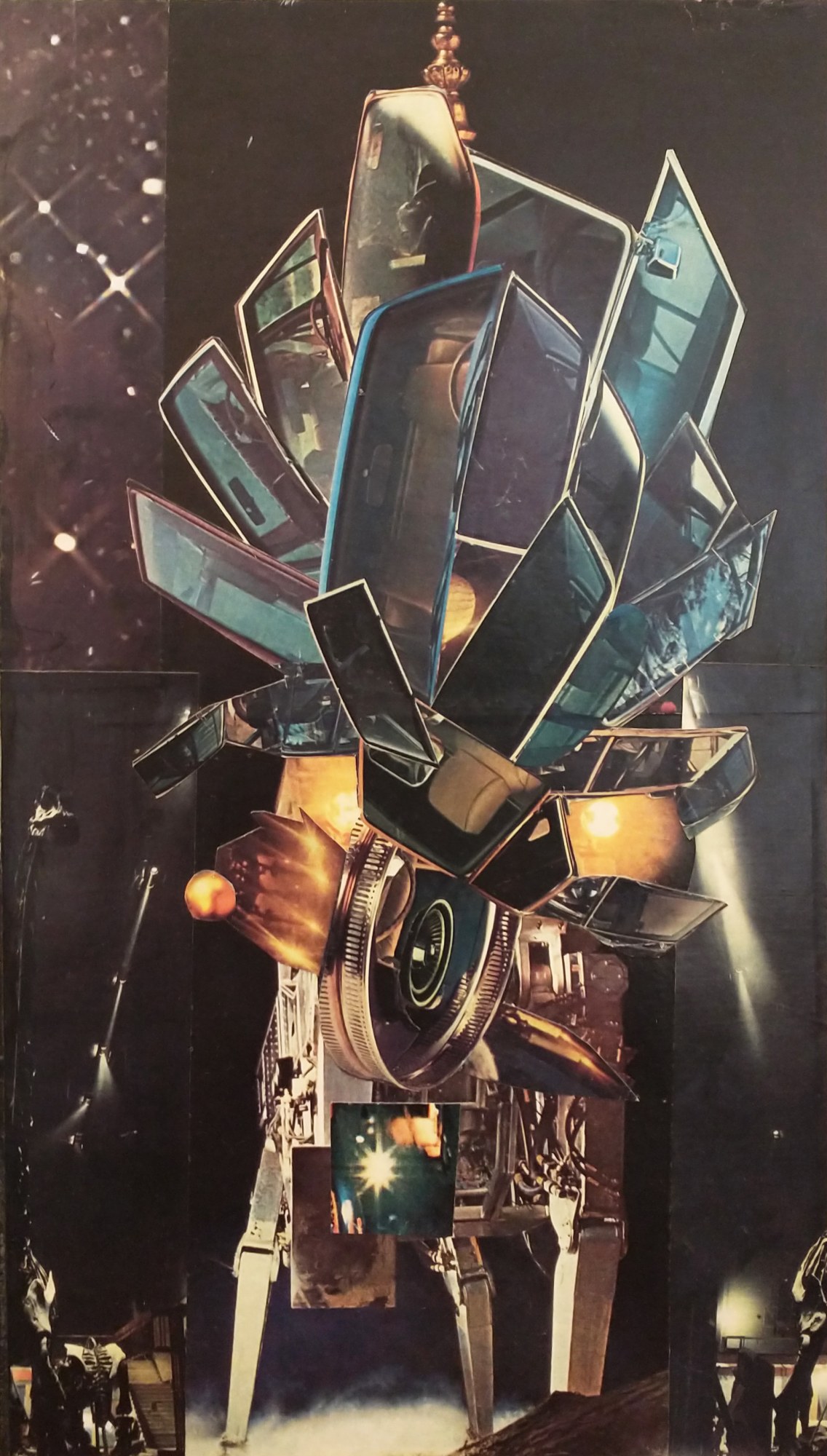 - Subject Matter: Techno dog creature with auto windshields as headdress