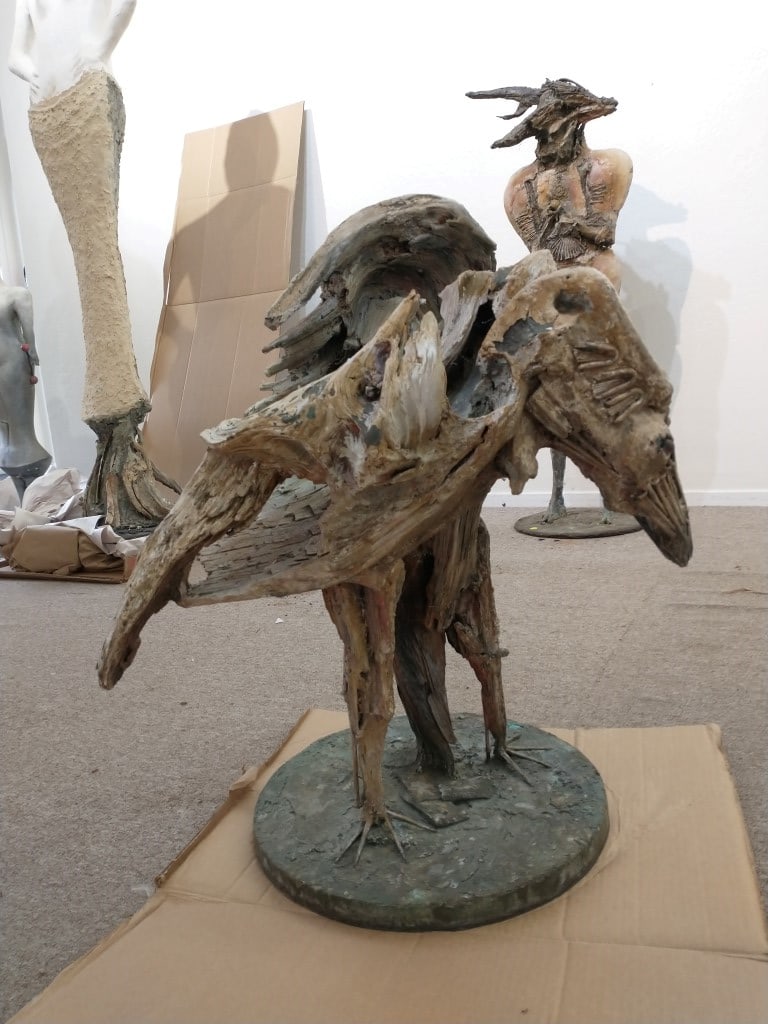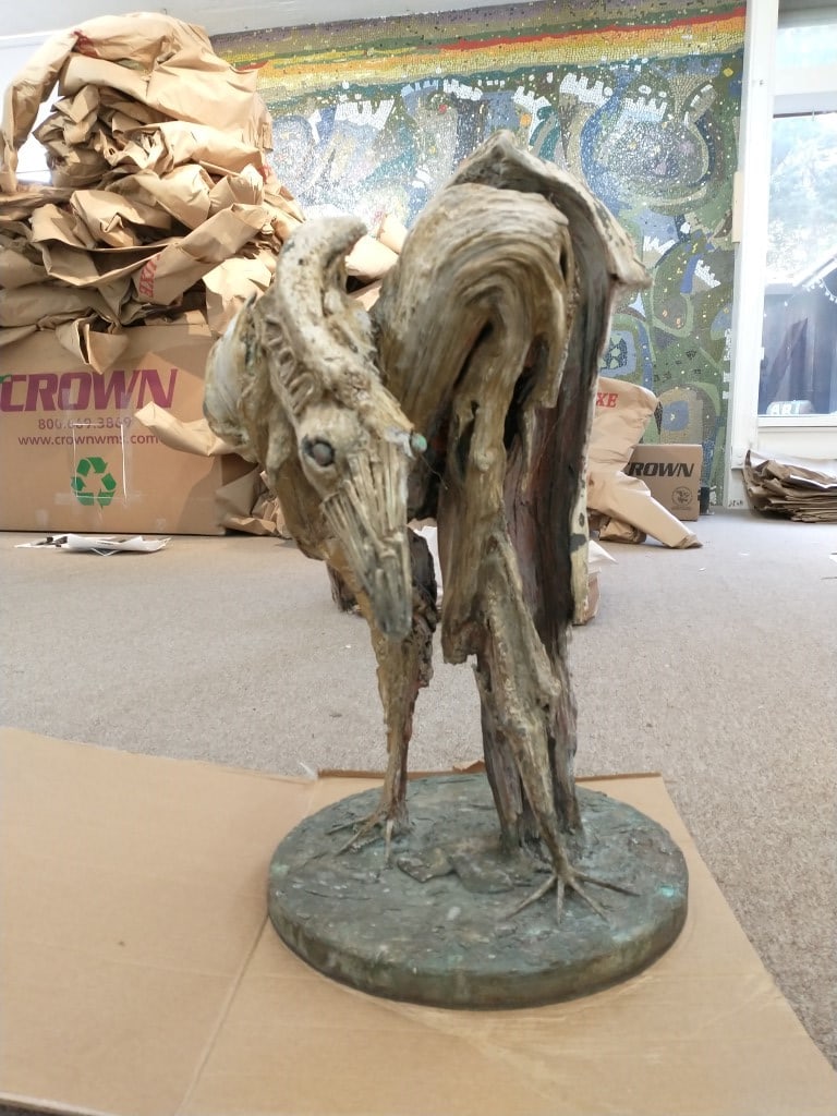 This painted bronze by Maxine Kim Stussy came to the Mendocino Art Center through a generous donation by the Maxine Kim Frankel Estate. This bronze can be found on page 71 of "THE HUMAN BEAST, The Art of Jan and Maxine Kim Stussy", by Michael Duncan.