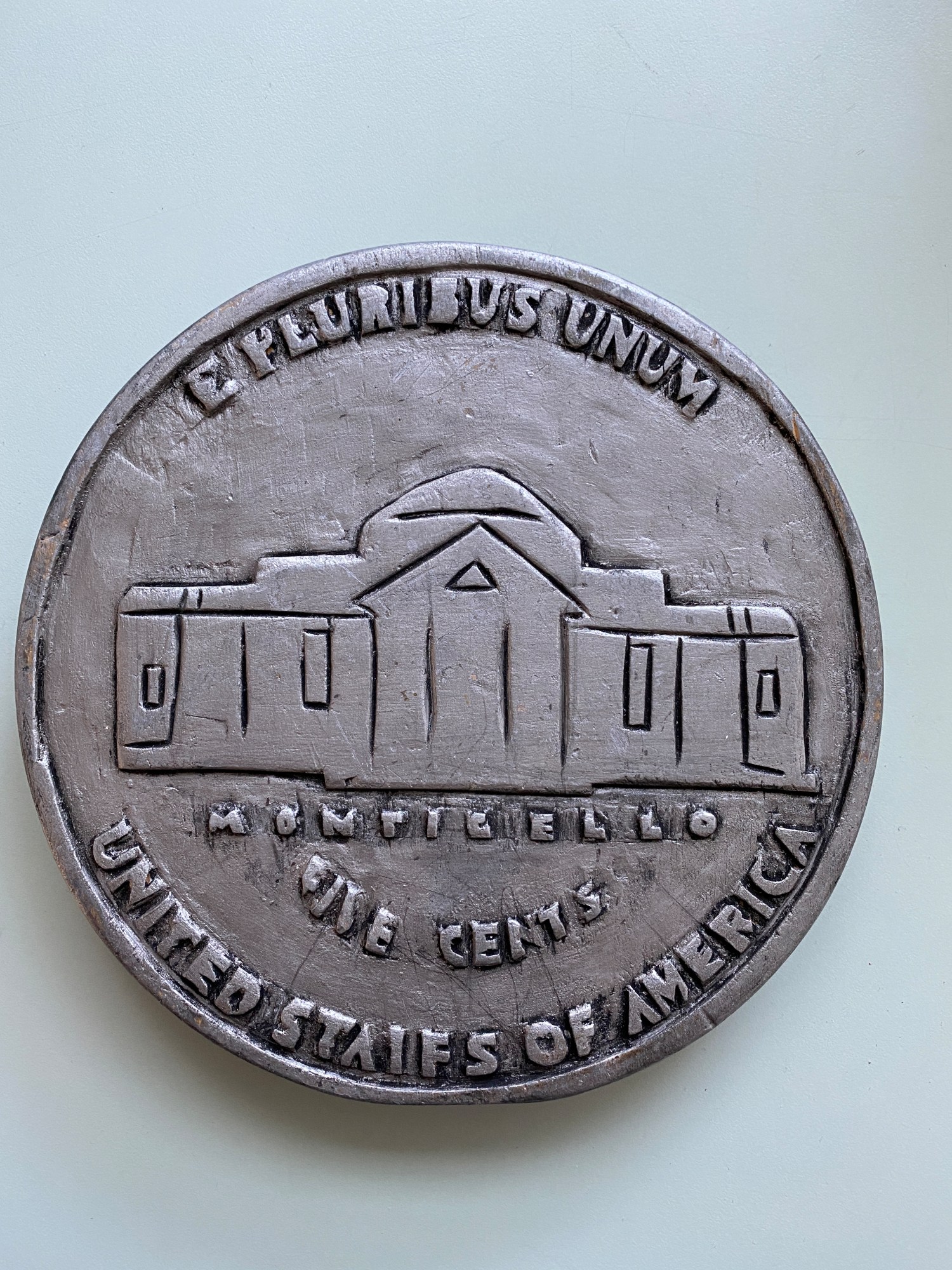 Antique Folk Art Hand Carved Wooden Nickel