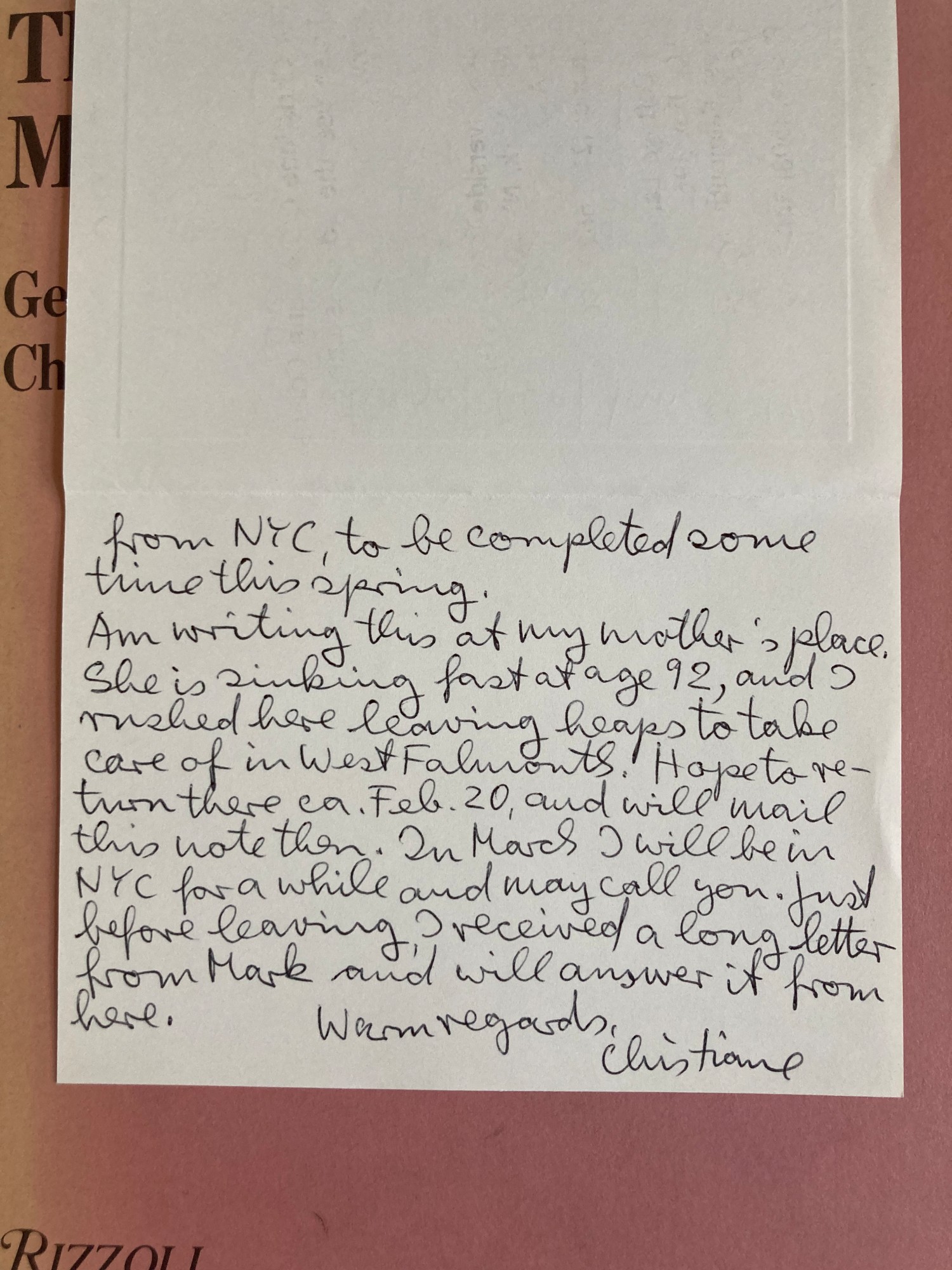 Signature: with personalized letter from Christiane Crasemann Collins