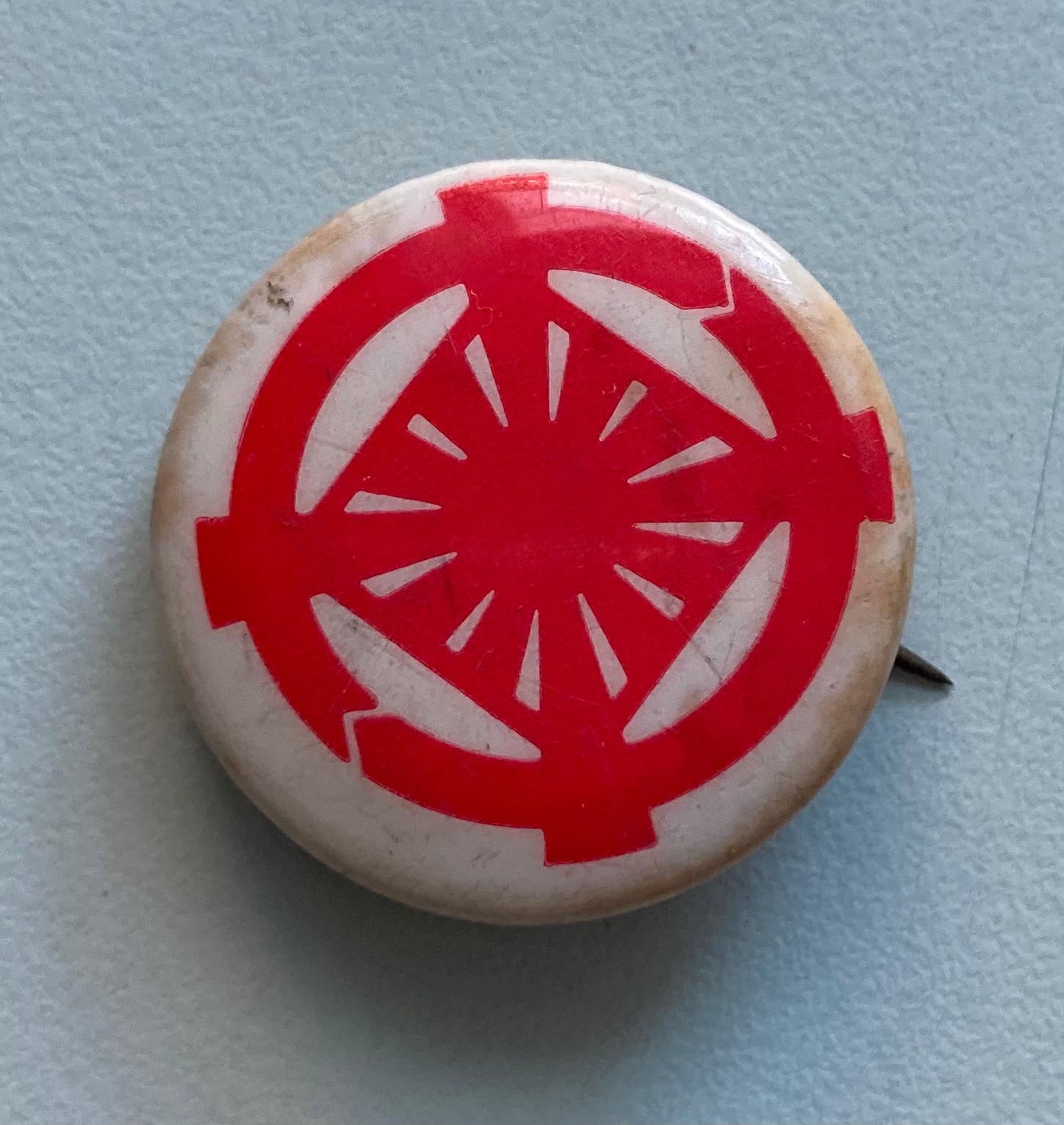 White button with red design