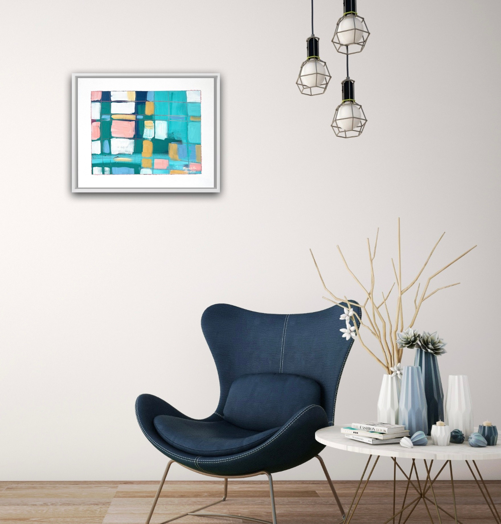 This artwork is from a new series of abstracts with a theme of connection, movement and colour.