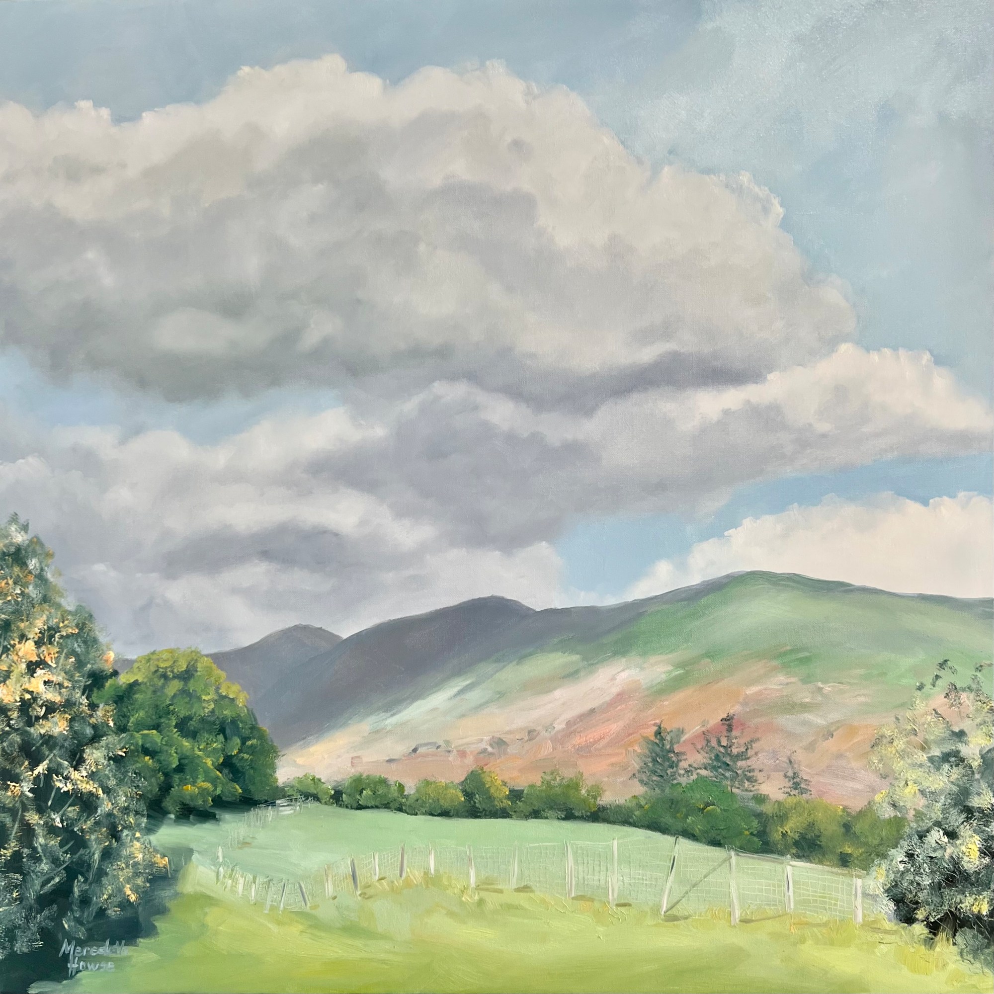 Ambleside by Meredith Howse captures the beauty of the mountains in Ambleside, in Cumbria, England, within the renowned Lake District National Park. The painting offers viewers a tranquil view of this location, situated near picturesque Windermere.