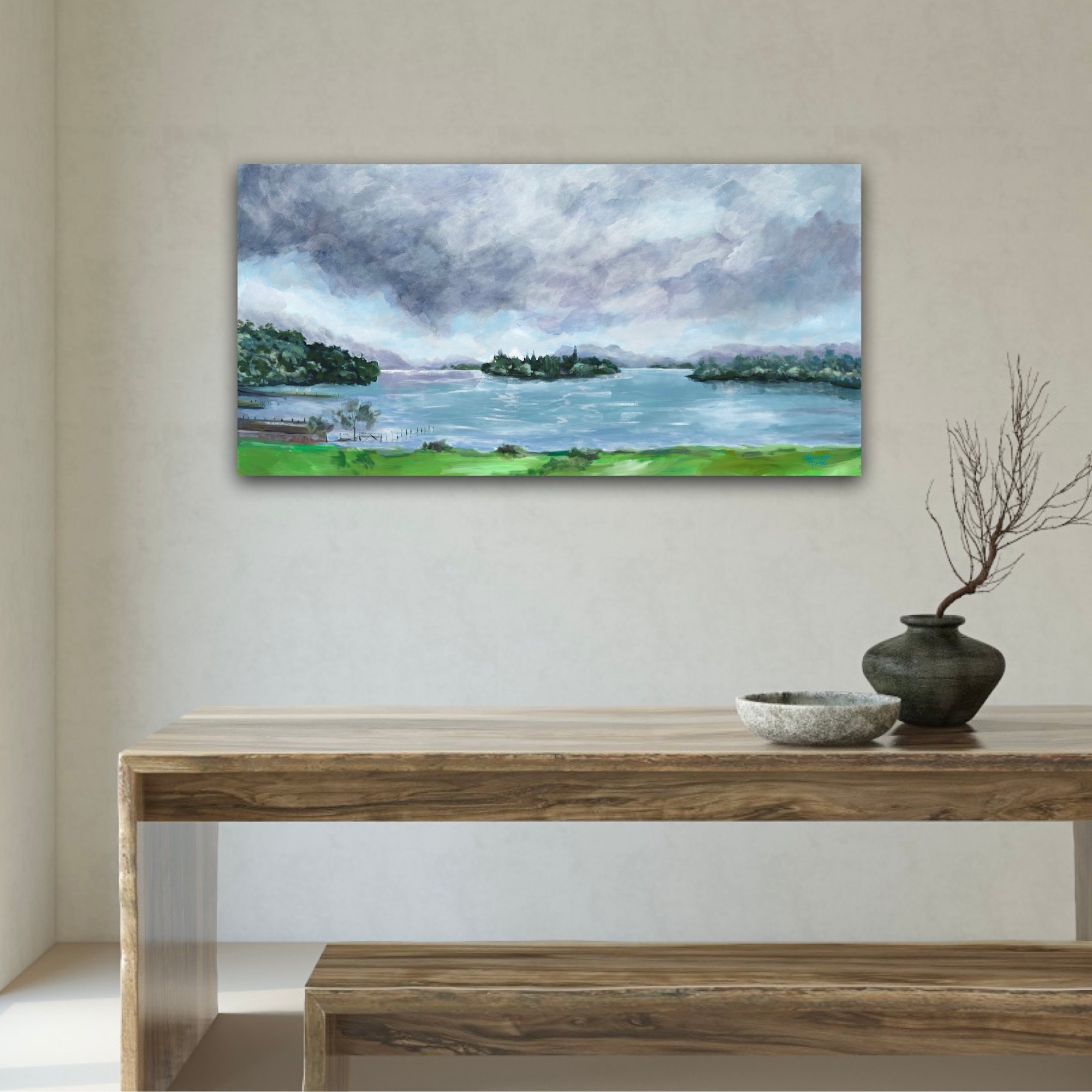 With its generous width, this artwork is ideal for hallways, lounges, bedrooms, or above side tables — adding a sense of calm and elegance to any room.