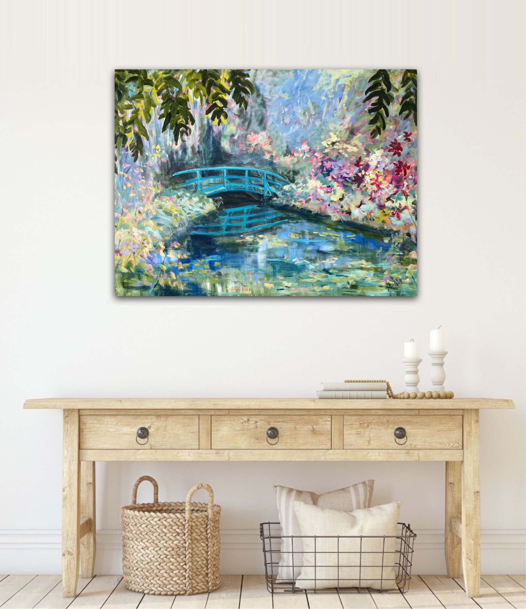 Giverny Garden Bridge by Meredith Howse is a large landscape artwork of Monet's garden in picturesque Giverny, France.