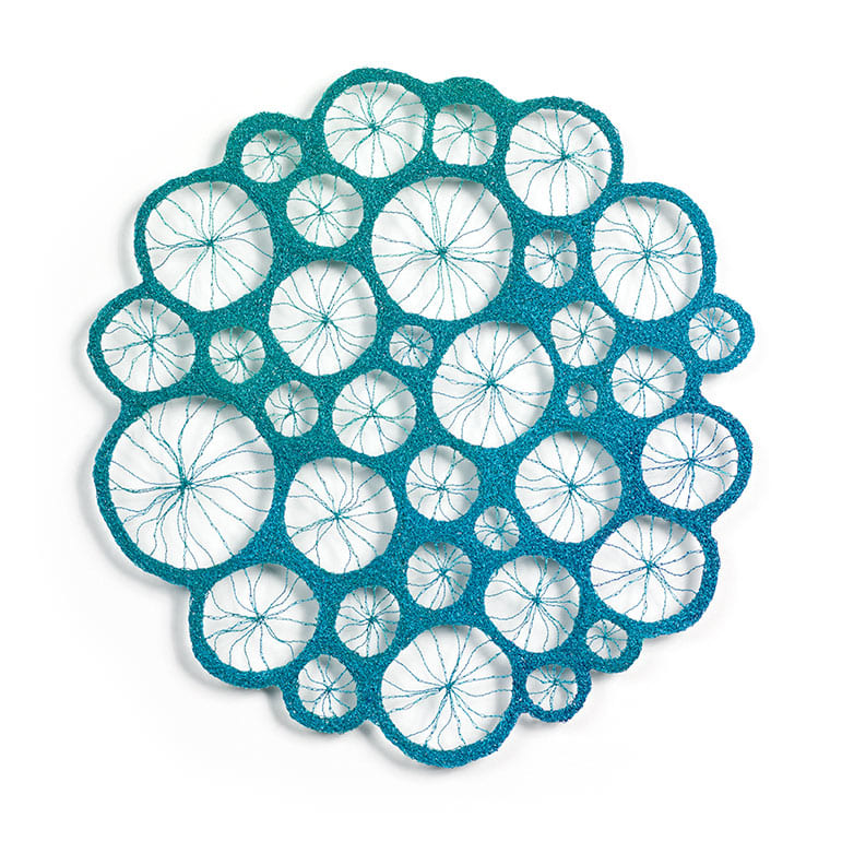 Corallite study in blues and greens. A corallite is the skeleton of a single coral polyp. The size, shape and arrangement of corallites differs greatly between coral species and they can be used for coral identification.