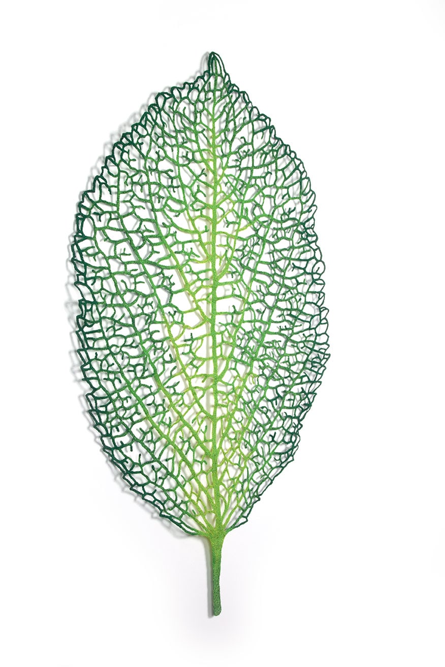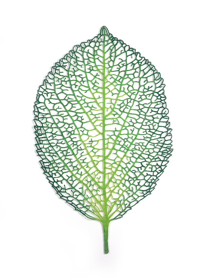 A stitched specimen of a 'French Hydrangea' (Hydrangea macrophylla) leaf.