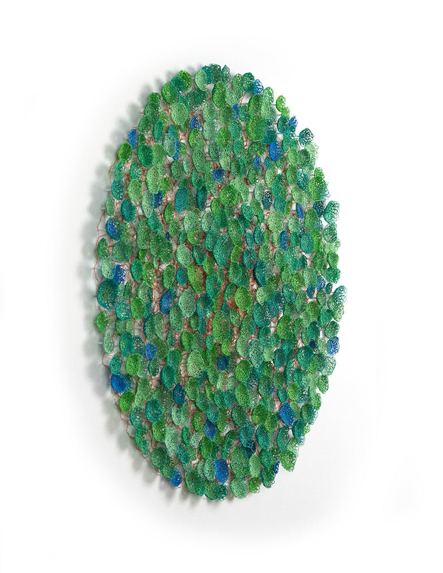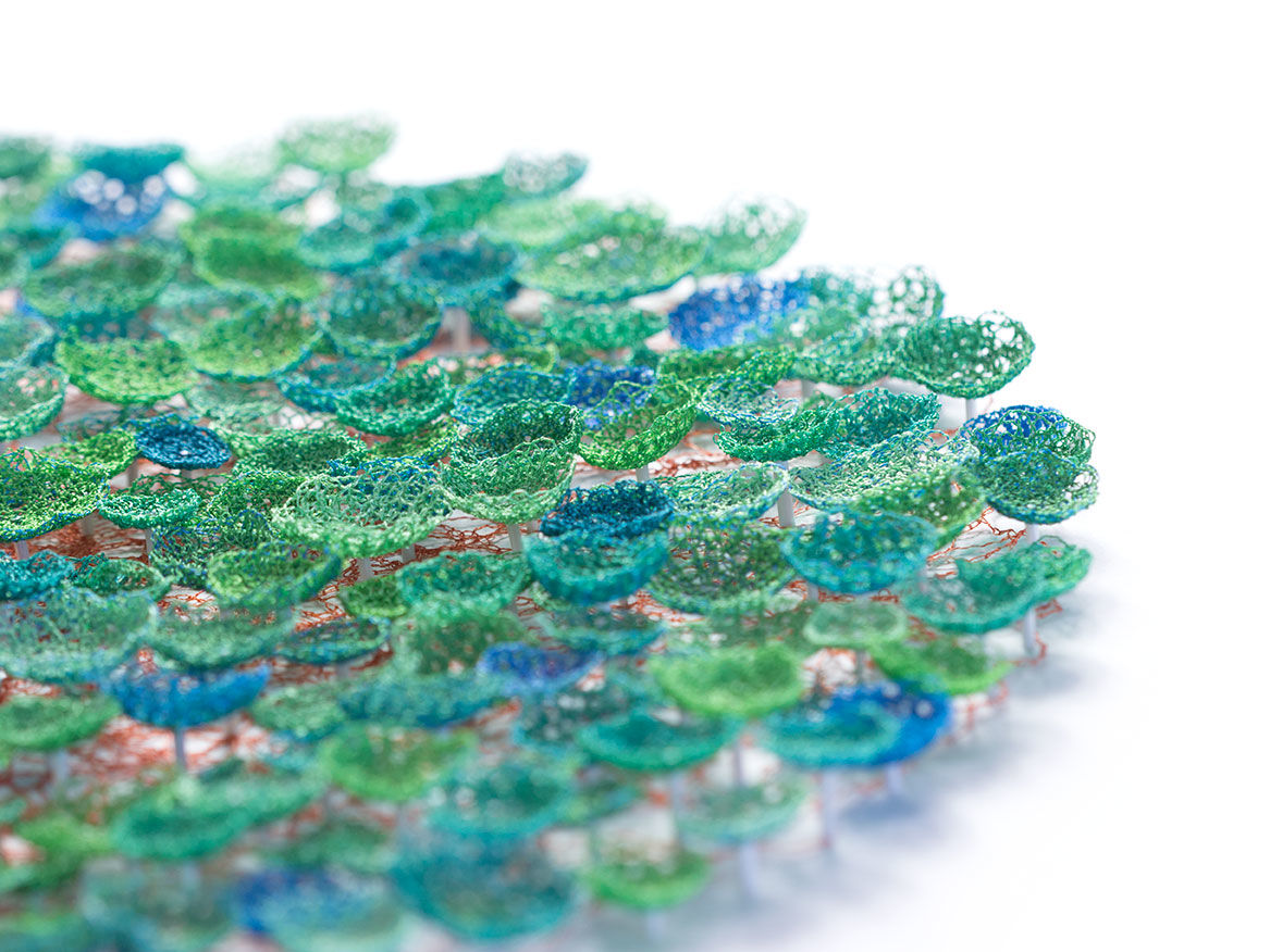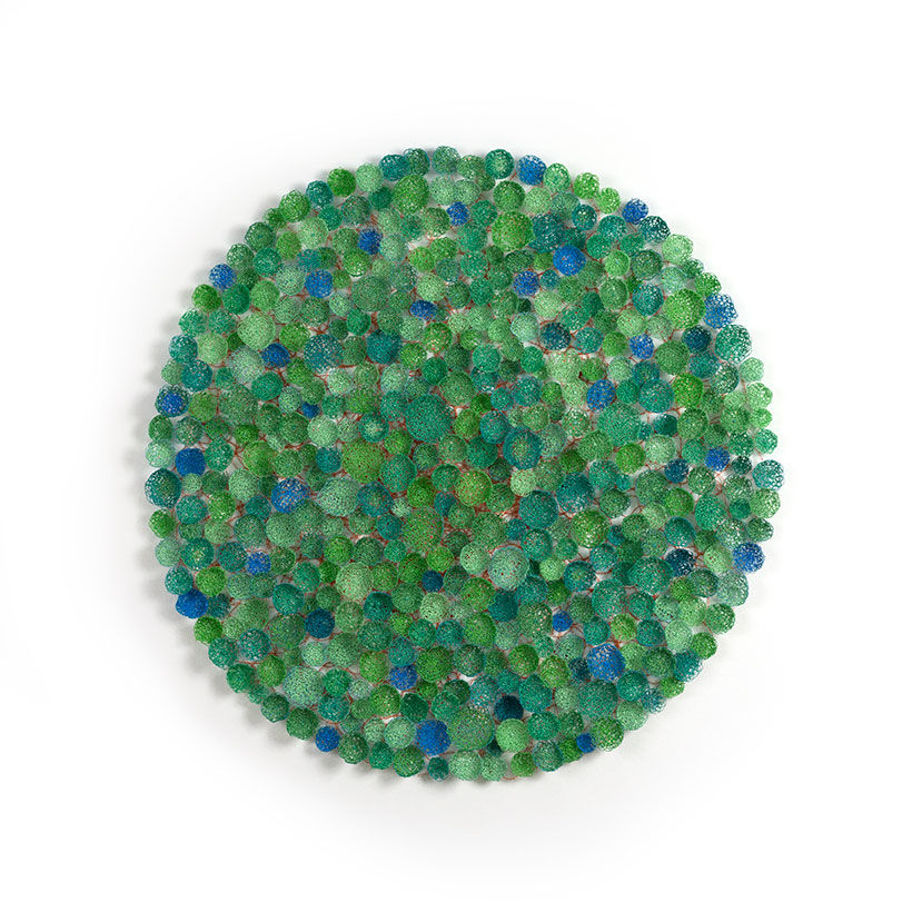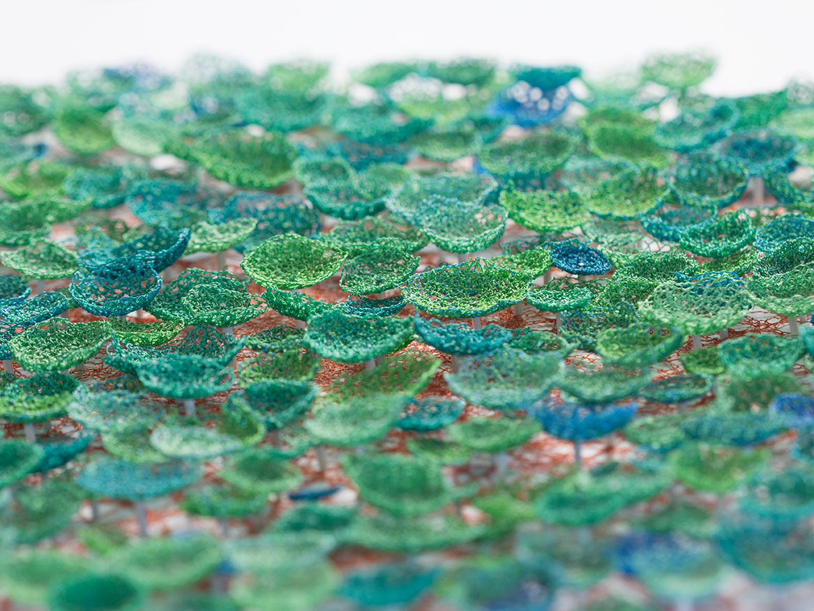 original embroidered artwork created for the Gibco 'Love your Cells' campaign made up of hundreds of shaped stitched cells.