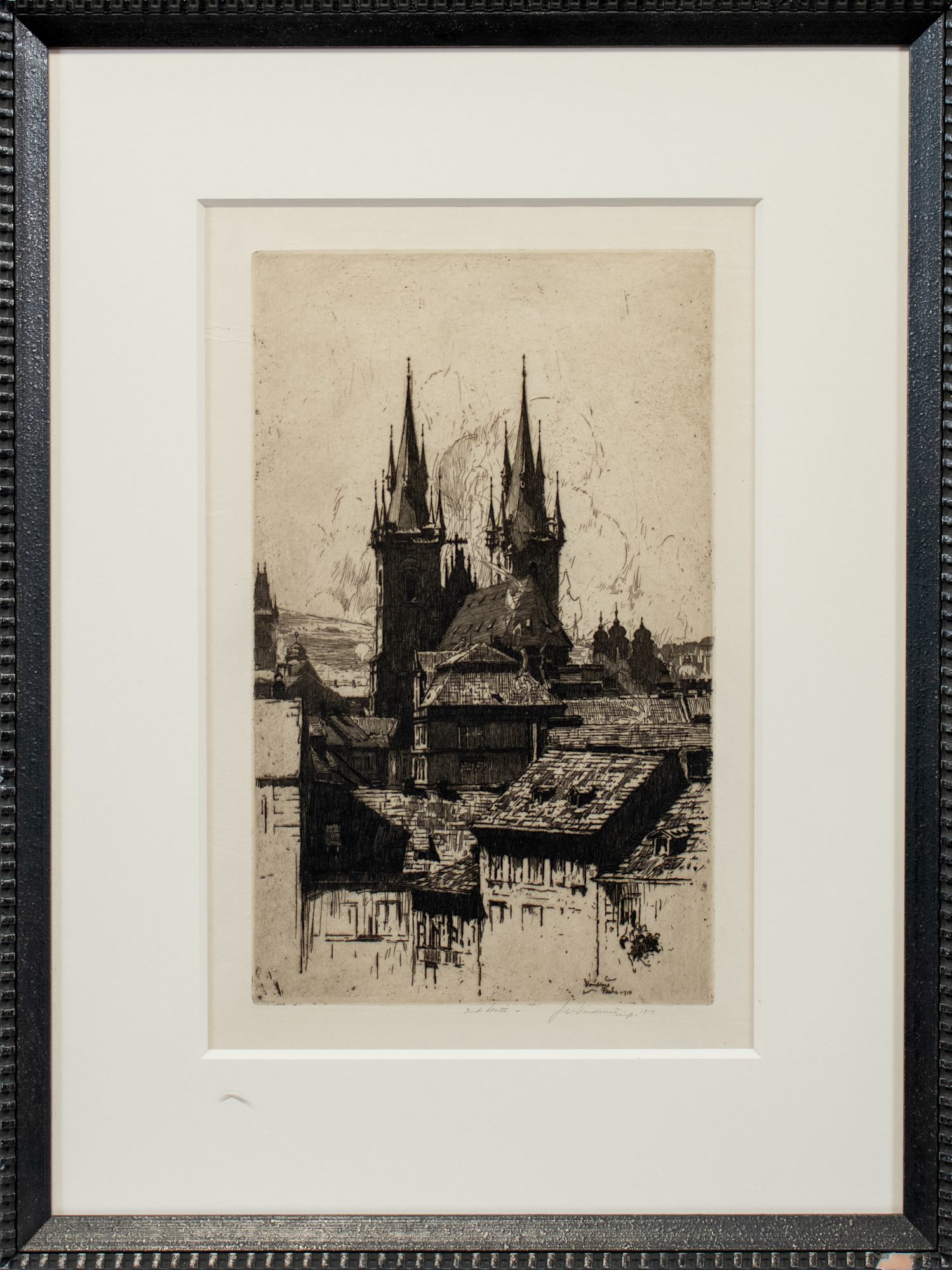 By 1929 Jan Vondrous returned to his native Czechoslovakia and lived and worked in Prague. During the following years he continued to both etch and paint the people and architecture of this city. Jan Vondrous was a full member of the Chicago Society of Etchers, the Print Makers' Society of California and the Hollar Society of Prague. Jan Vondrous' original etchings are included in the collections of the Modern Gallery of Prague, the Art Institute of Chicago, the Congressional Library, Washington, DC, the New York Public Library, the Kupfersitch Kabinett, Berlin, and the British Museum, London.