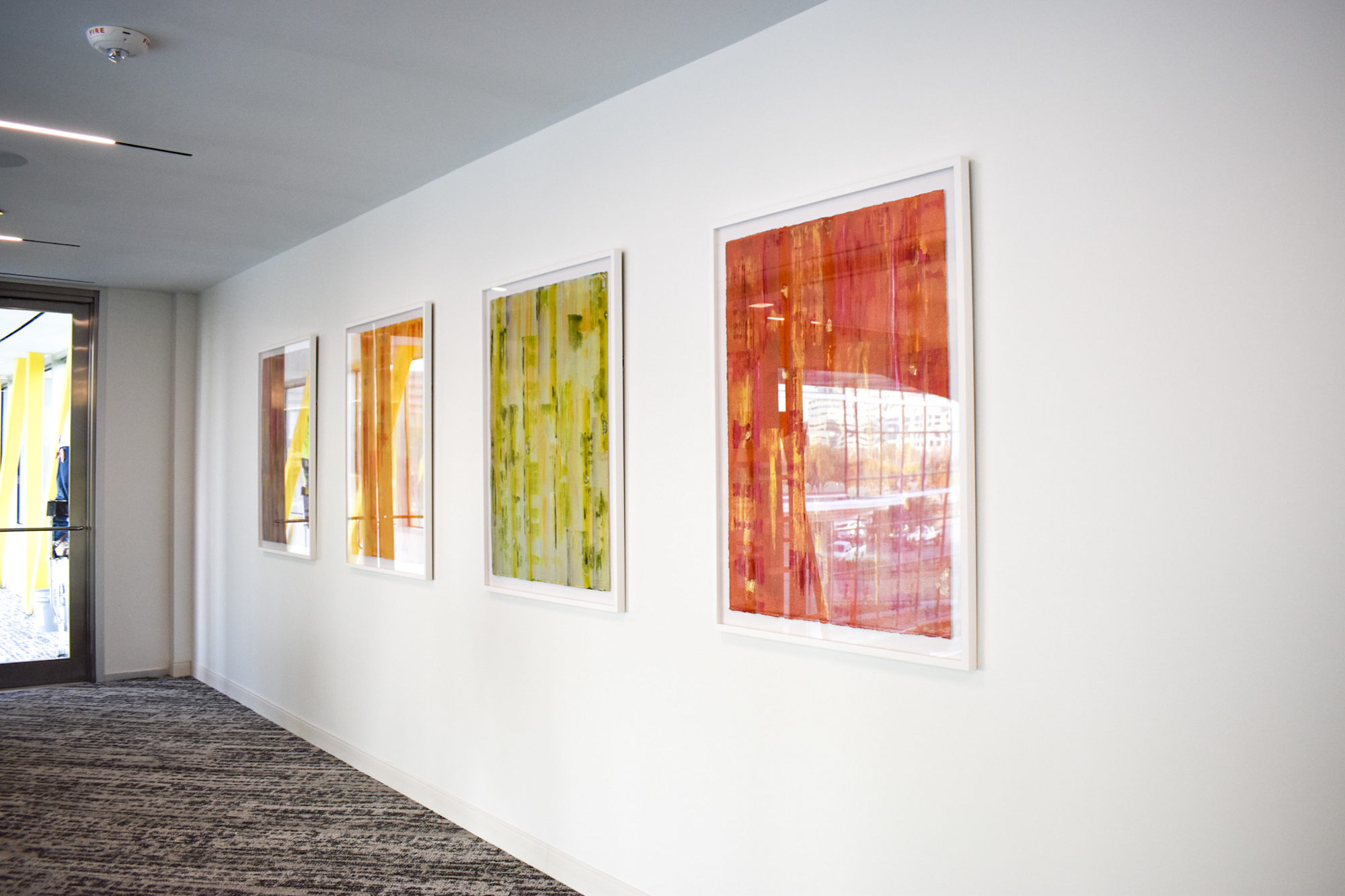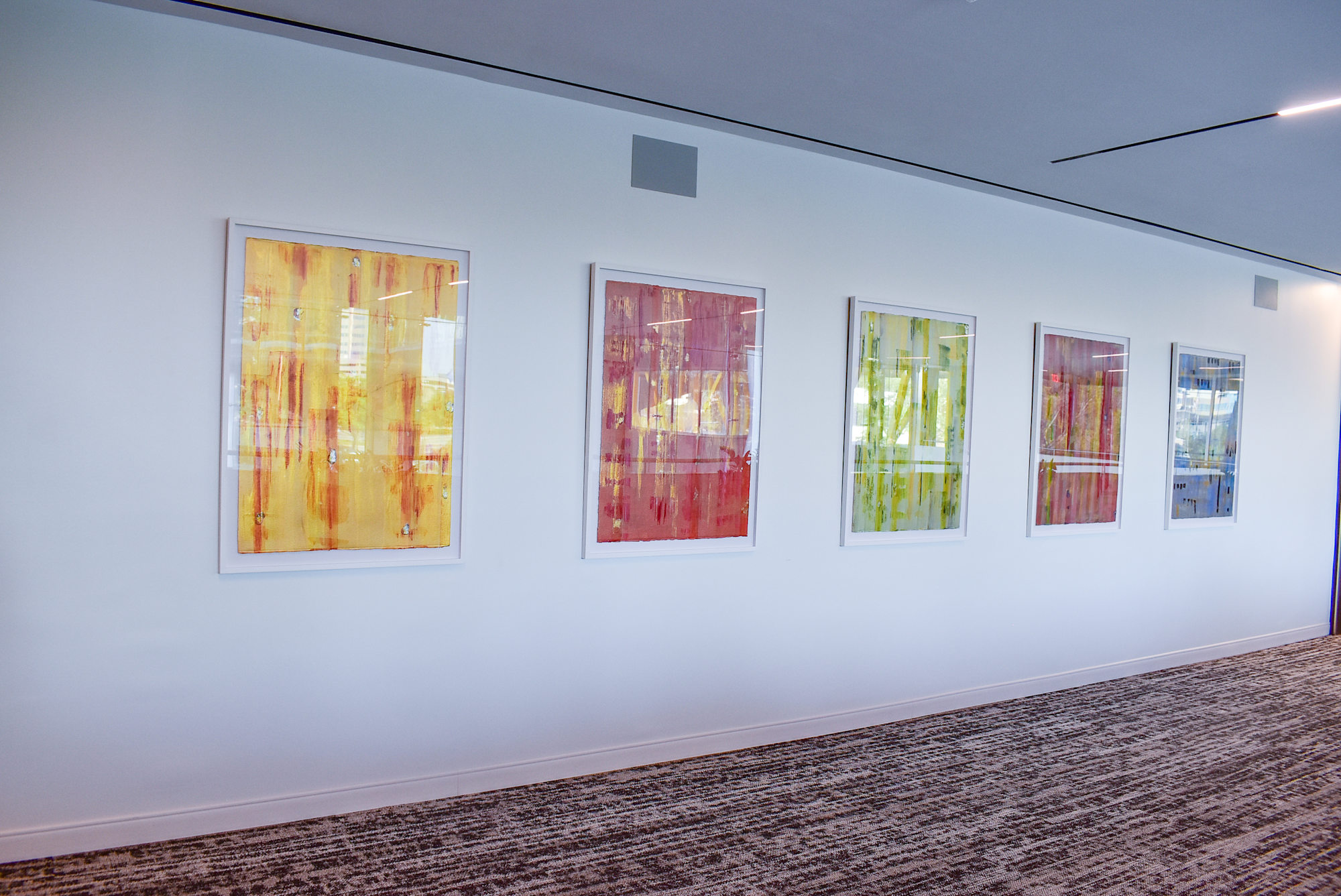Framed Acrylic on Paper (Blue) White Wood Frame with Conservation Glass.