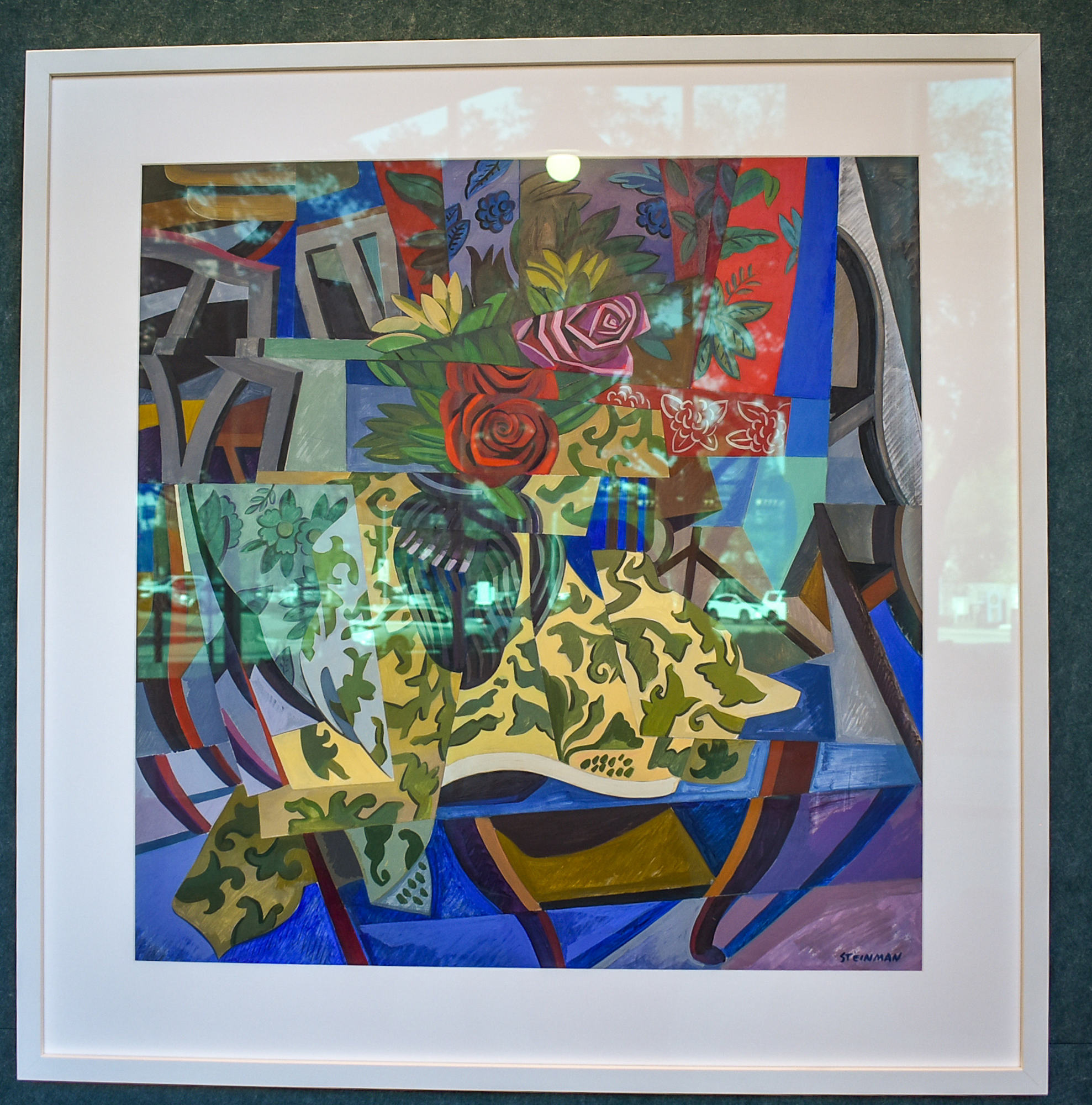 Joan Steinman's portraits of daily life hum with color and vibrancy. Born in Beaumont, Texas, Steinman received a BFA from the Kansas City Art Institute and an MFA from Indiana University. Her work also draws inspiration from studies in Italy and France. Steinman's still lives of flowers, vases, and textiles are cubist kaleidoscopes, the scenes fragmented by shafts of light. Her bright cityscapes capture architecture with a deftness and solidity, while still retaining the sense of light, color, and sun that saturates her interior scenes. Steinman's painted worlds are characterized by a sense of joyous chaos but embedded with a clear sense of pattern and composition. She paints life as a swirl of color and shape- a collision part man, part built environment, and part natural world.