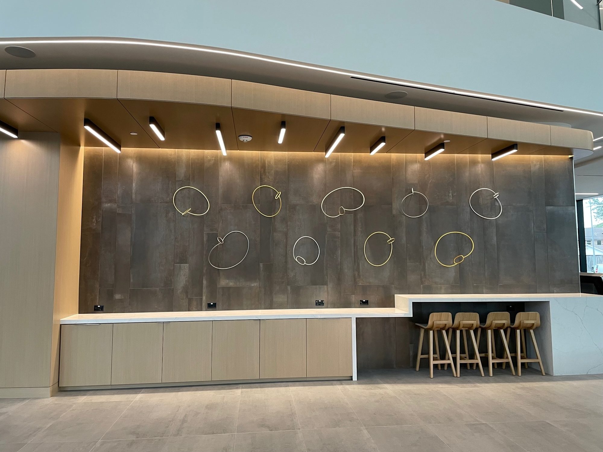 To activate space & engage the viewer Tara Conley employs metal, light, line, text, & shadow, mixing materials & processes in surprising ways. Careful, deliberate attention is paid to each surface & every line. She explores the power & subtlety of line by bending steel & stainless steel round bar, creating volume without weight. Like a gesture of roping wind, the lines & shadows bring the viewer to a place where clarity & resonance are unimpaired. Intuitive, vulnerable, & lyrical, the pieces are both material & spiritual. Calibrated & free form concealment, they are unfolded line drawings. Negative space captures the viewer while the line work encourages one to look in, on ,up & within. Conley has an extraordinary knack for creating organic, yet original, shapes from man-made materials, adding a delightful sense of humor & wonder to the mix. Tara received her BA from Rochester Institute of Technology. She lives & works in Houston, Texas.