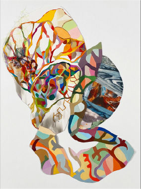 Art work using Gouache, Acrylic, and Candle Smoke on paper with Graphite and Drafting Film