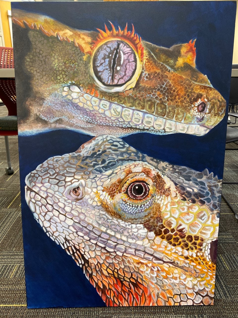 Luke Achterberg installed MCC's latest public art work at the South Omaha Campus on November 15, 2023.
