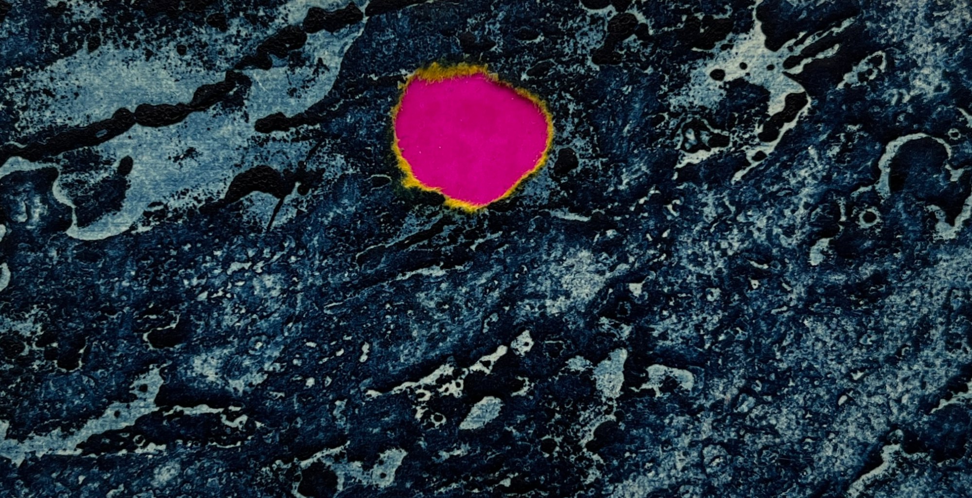 - 1960s Blue & Pink Collage Intaglio Etching NY Artist Myril Adler, 1960