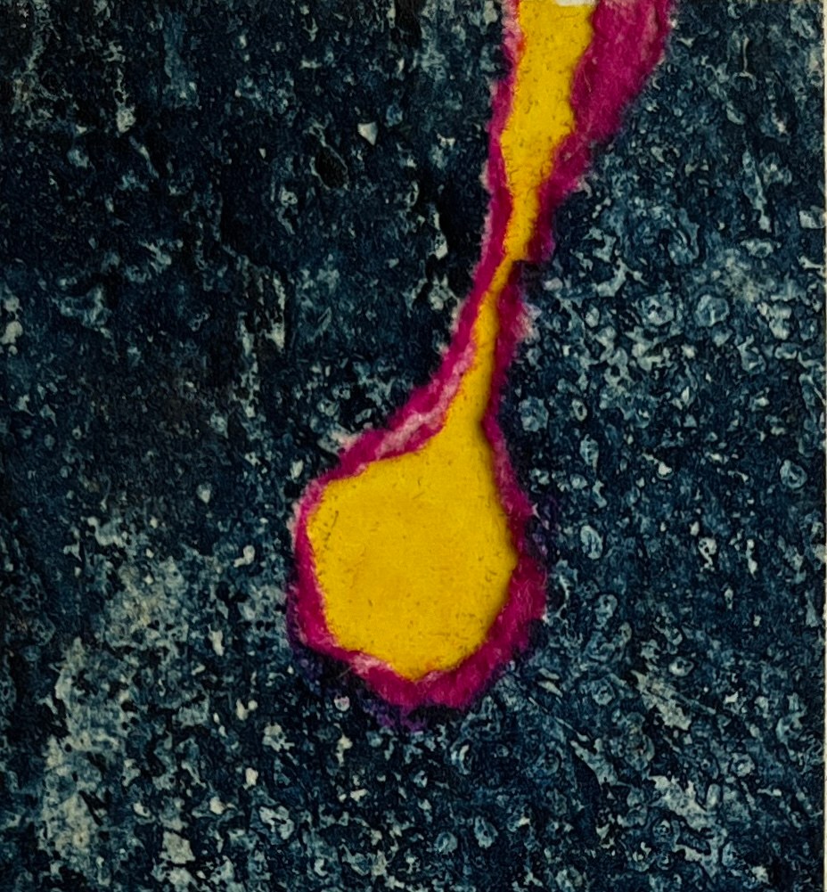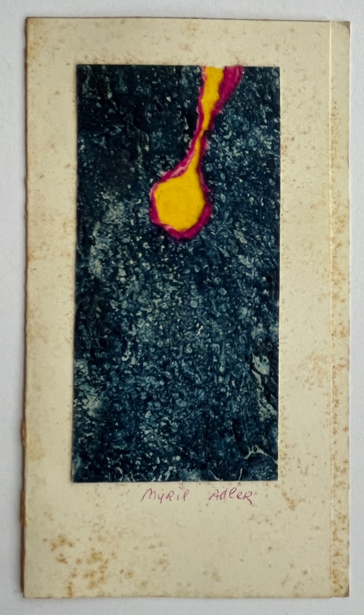 - 1960s Blue & Yellow II Collage Intaglio Etching NY Artist Myril Adler, 1960