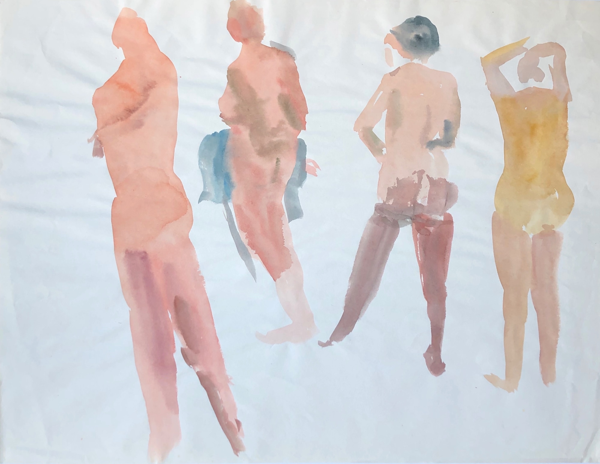 1970s 4 Female Nudes Watercolor "Touch of Blue"