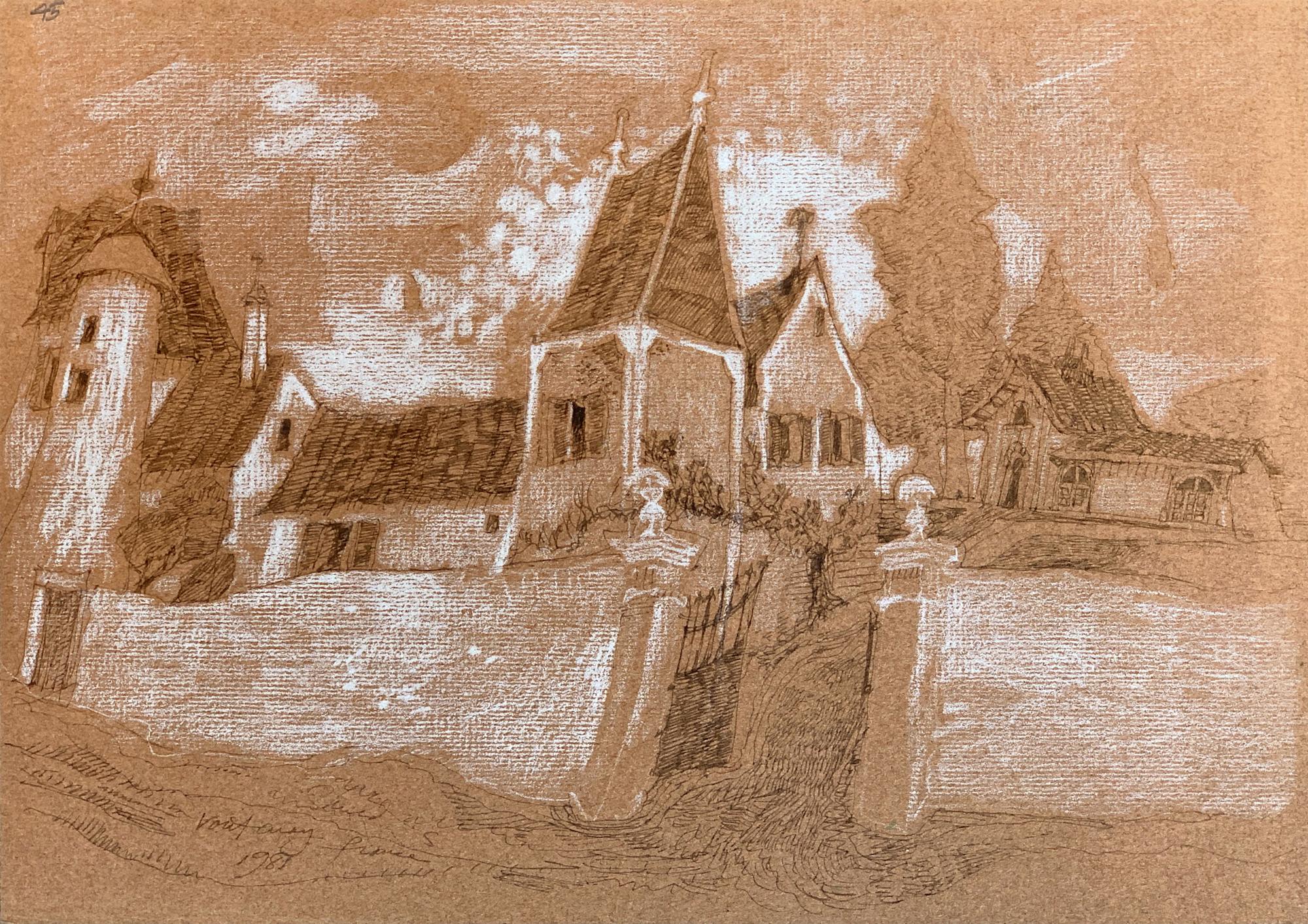 - 1981 "House" Abstract Landscape Drawing Acclaimed Illustrator Bill Shields, 1981