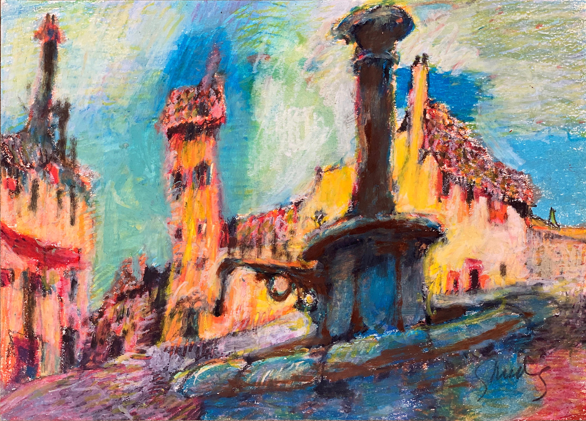 - 1987 "Southern France" Landscape Drawing Acclaimed Illustrator Bill Shields, 1987
