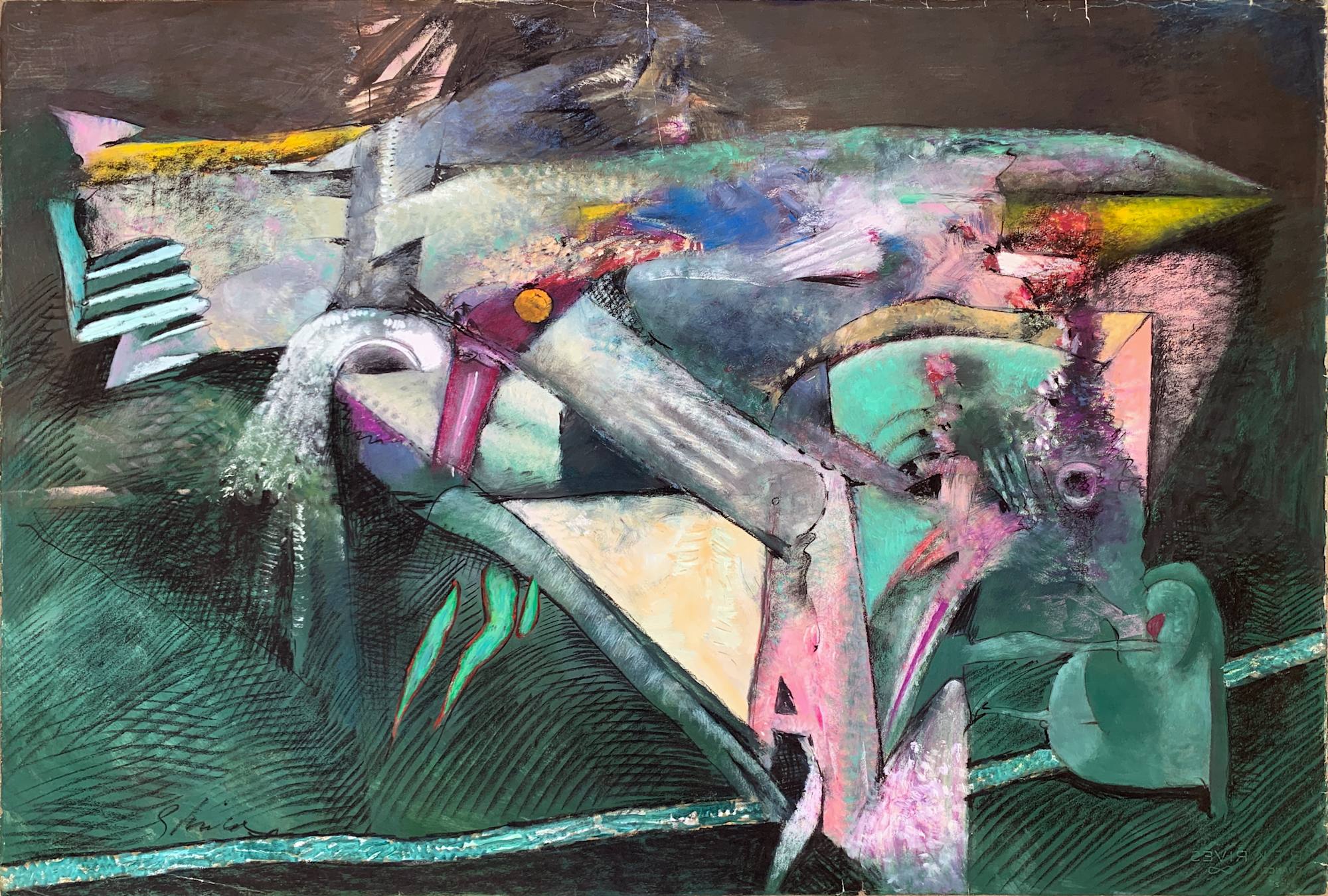 - 1989 "Eyes of August" Abstract Painting Acclaimed Illustrator Bill Shields, 1989