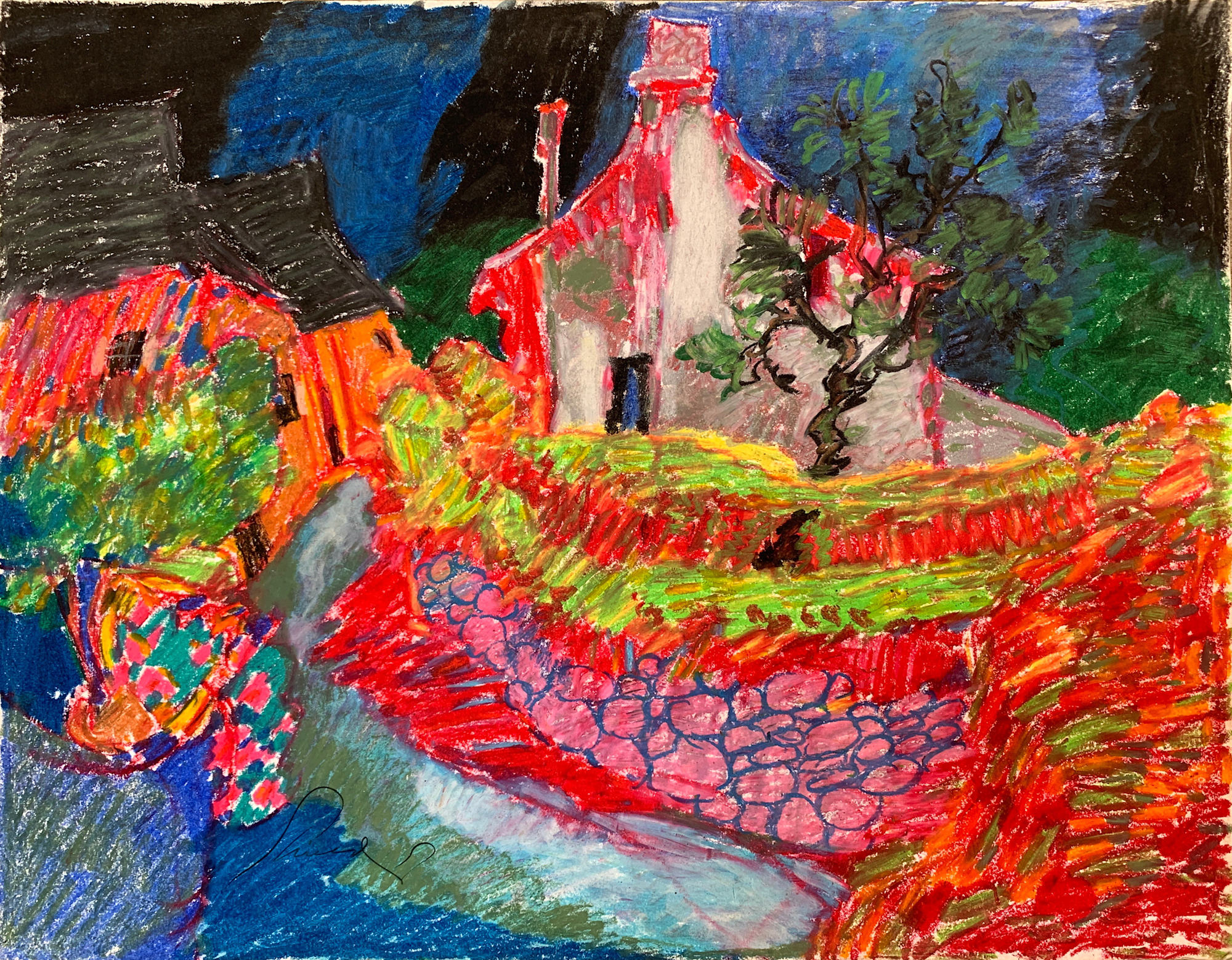 - 1989 "Road Into Sisteron" Abstract Landscape Drawing Acclaimed Illustrator Bill Shields, 1989