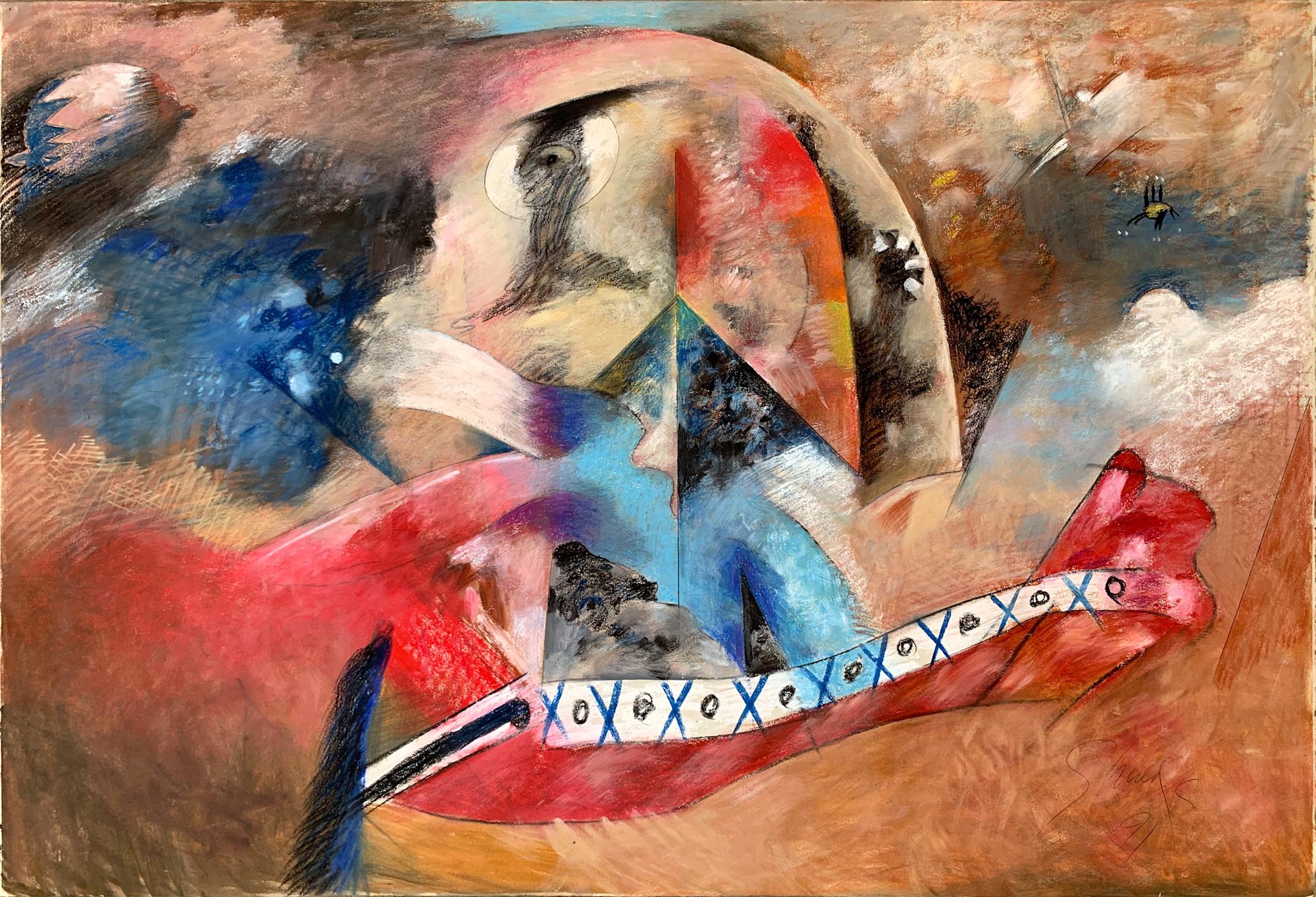 - 1991 "Intersection" Abstract Painting Acclaimed Illustrator Bill Shields, 1991