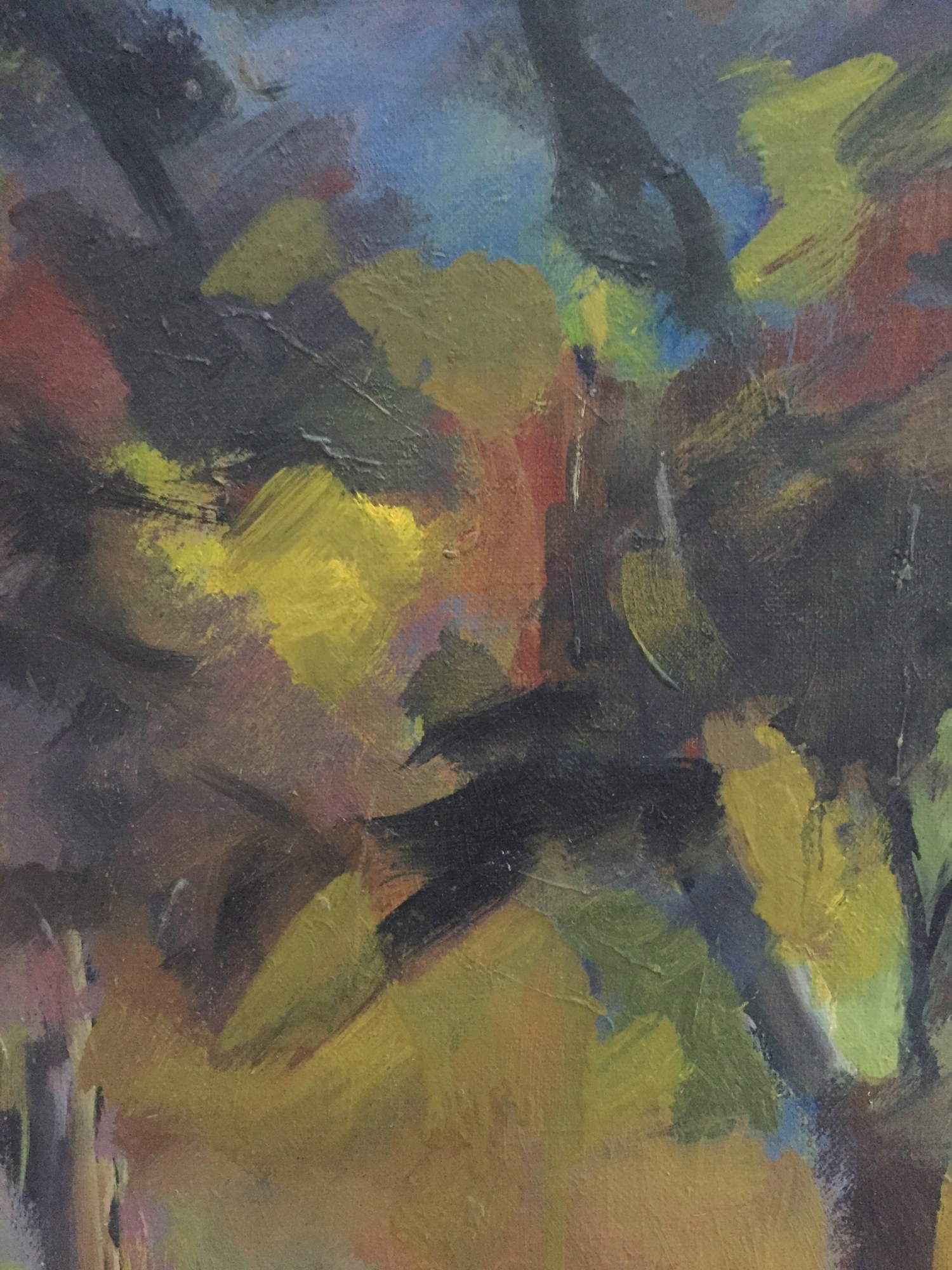Vintage, California landscape oil painting on canvas board. Unsigned, came from the estate of Will Frates (1896-1969) and painted in same style as his signed pieces. Unframed painting measures 22" x 28". Lovely, muted colors of vintage California c. 1940's.