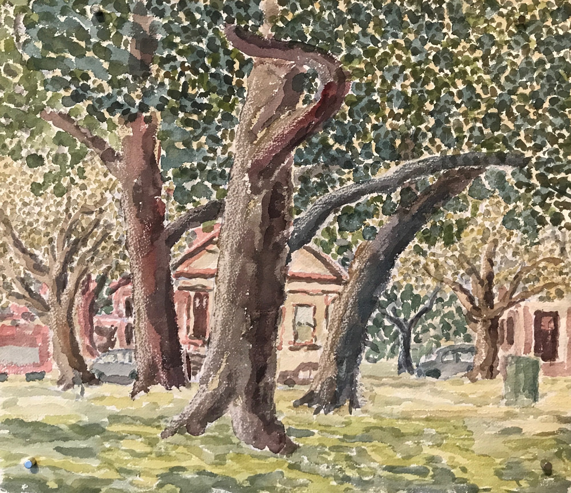 As his business prospered it allowed him the freedom to paint, draw, and sculpt. In the early 1950s he moved to the Victorian at 1601 Paru Street and lived in what is, today, the Signature Gallery while conducting business in the Main Gallery. He spent his free time painting en plein air. He had a particular affinity for trees and for the landscapes of Mount Diablo.