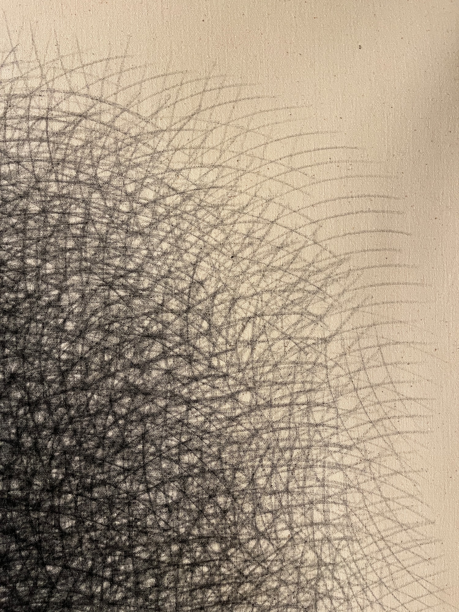 - "Light Black Blur #2" Charcoal Cross-Hatch Drawing on Canvas 1978, 1978