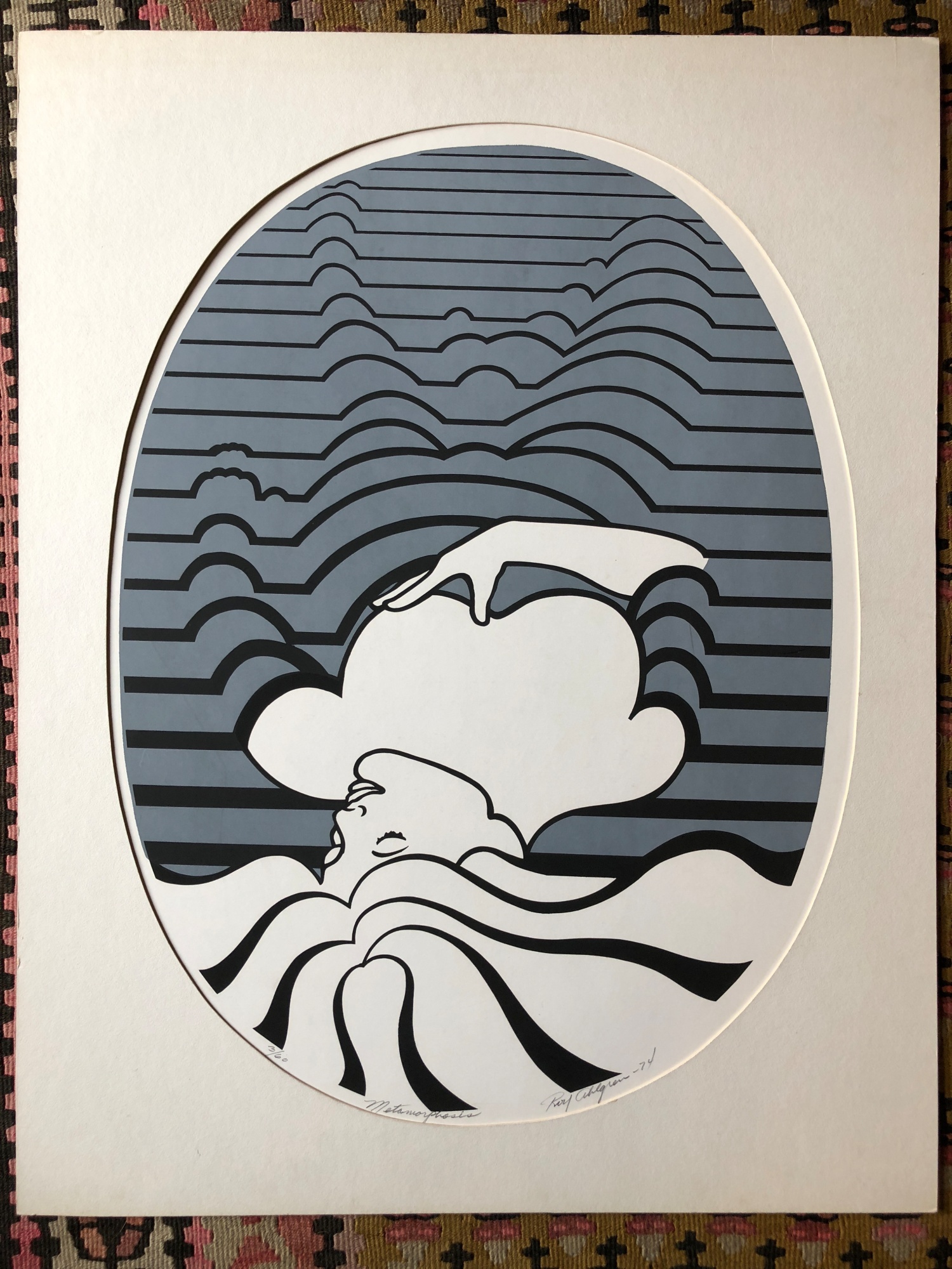 Roy Ahlgren entered the art world somewhat in reverse. While most artists start by recording realistic subjects and moving to abstract work later in their careers, Ahlgren began creating geometric abstract designs and continued to do so for 23 years. His media was both serigraphy and traditionally brushed pigment onto canvas. His compositions were unique with many being mathematically constructed with considerable precision.