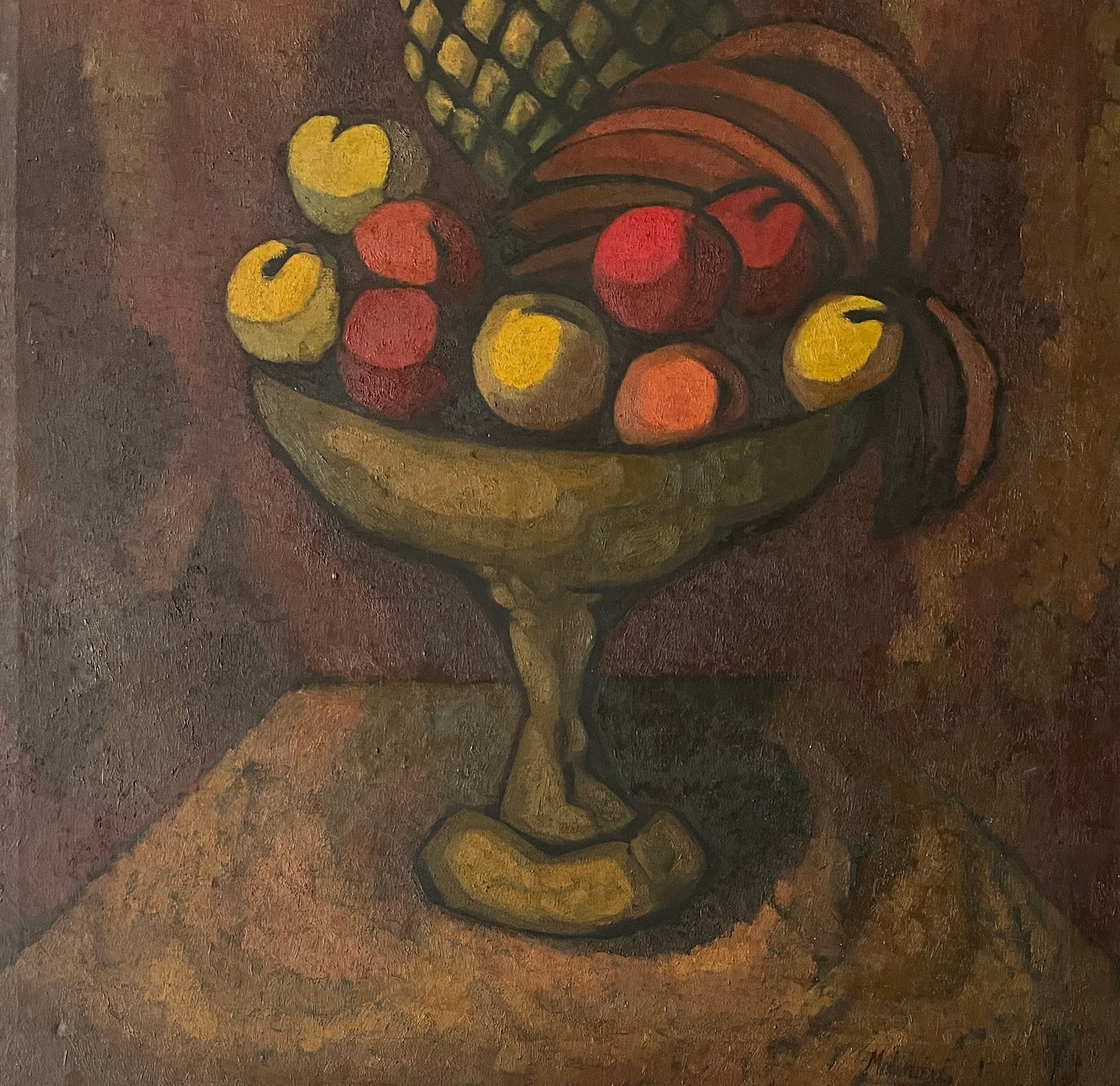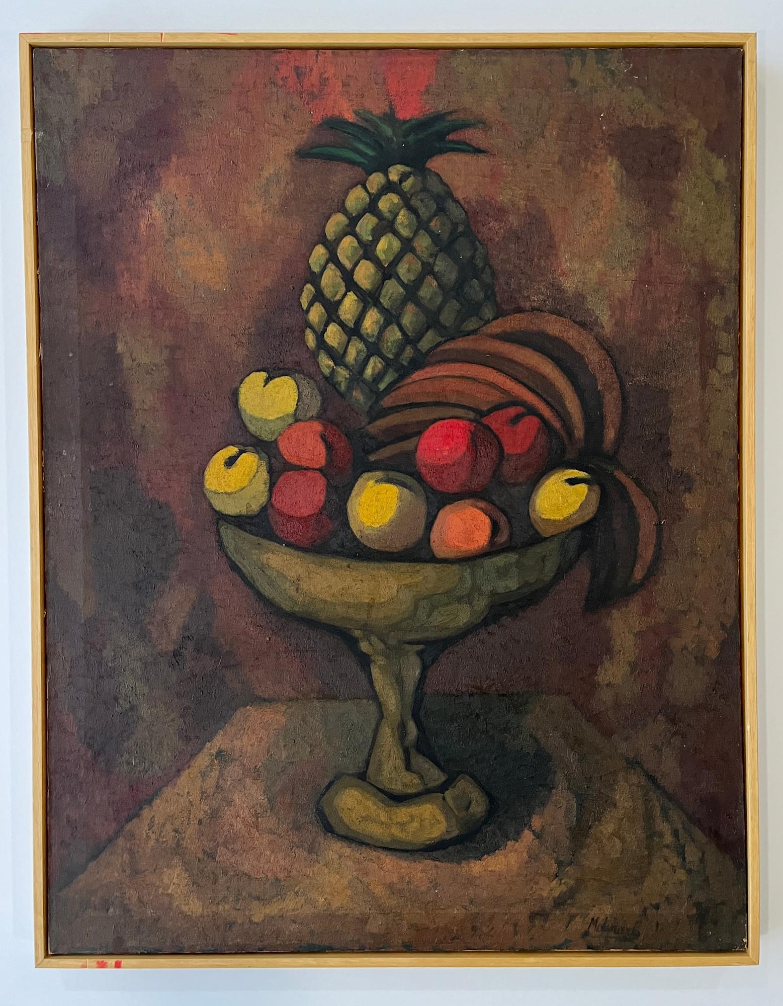 - Mexican Modernist Still Life Oil Painting Mid 20th Century "Bodegon Fruitas", 1960
