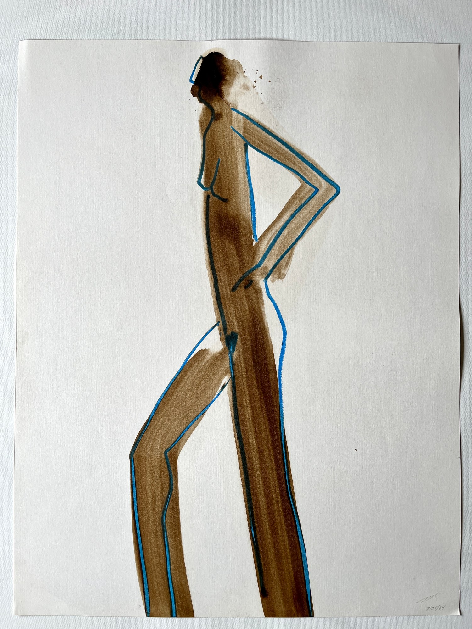 - "Nude with Turquoise 7" 1984 Figure Gouache and Pastel American Modernist Jack Hooper, 1984