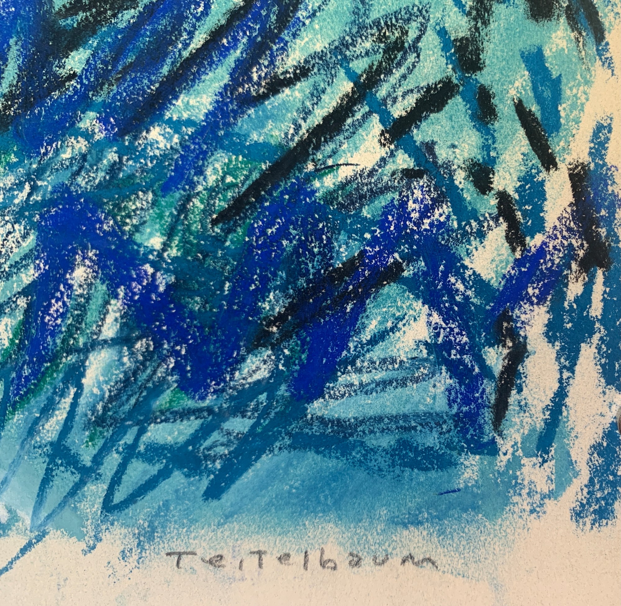 - "Pastel Landscape in Blues" Mid Century Impressionist Landscape Drawing, 1960