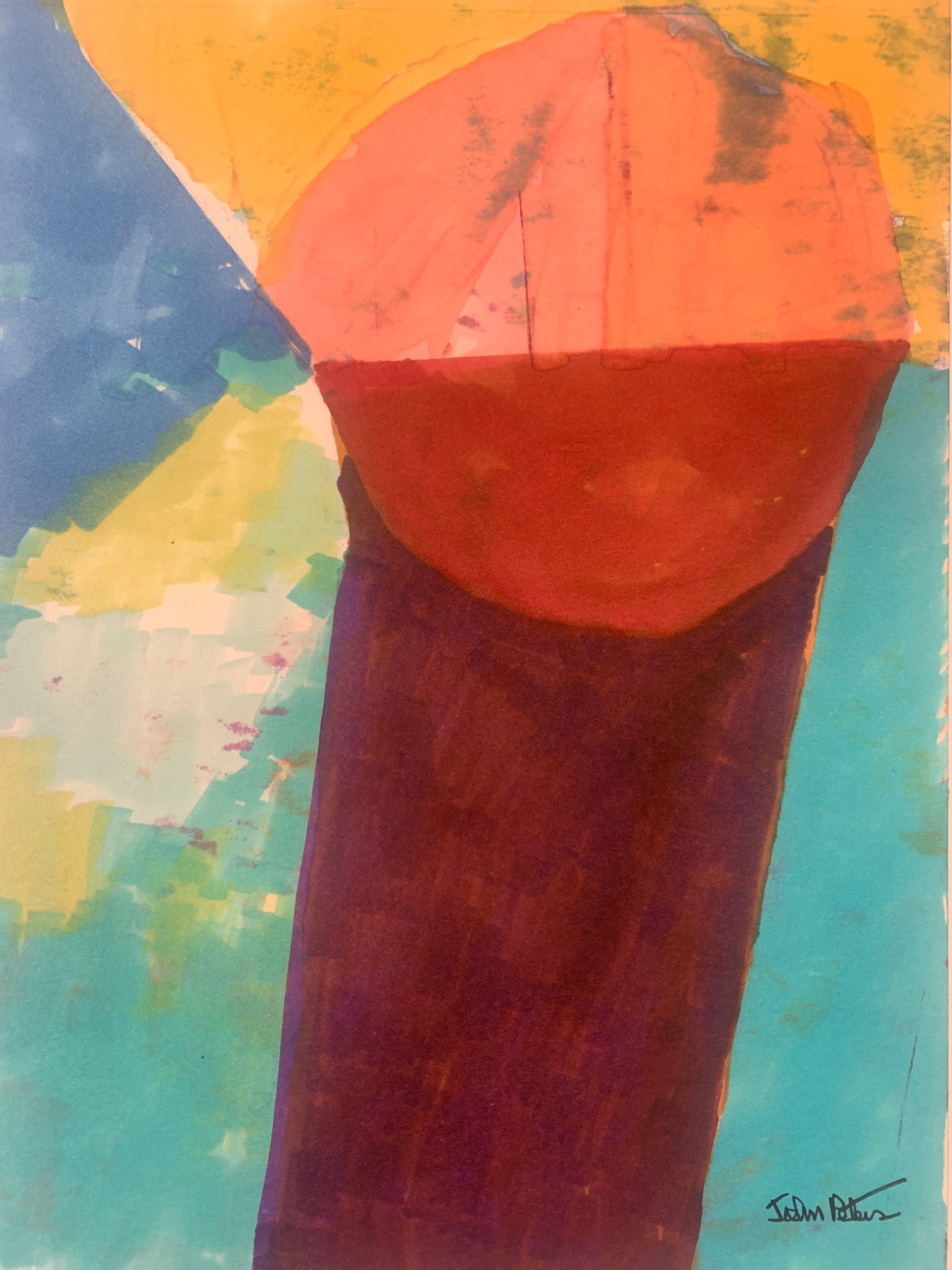 - "Purple Post" NYC Artist John Peters Original Abstract Drawing, 2017