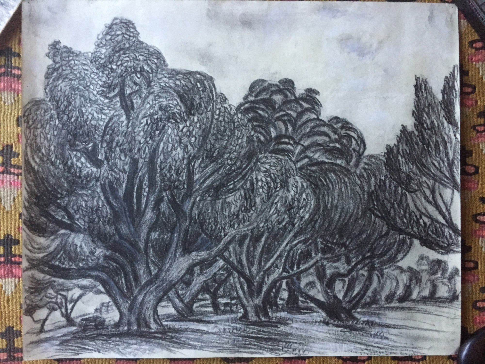 As his business prospered it allowed him the freedom to paint, draw, and sculpt. In the early 1950s he moved to the Victorian at 1601 Paru Street and lived in what is, today, the Signature Gallery while conducting business in the Main Gallery. He spent his free time painting en plein air. He had a particular affinity for trees and for the landscapes of Mount Diablo.