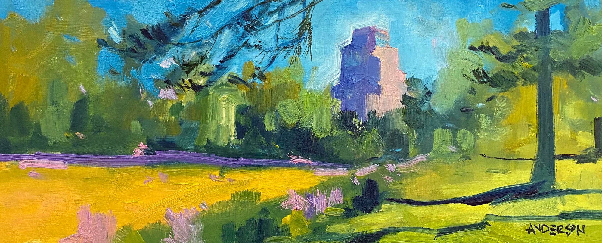 This plein air sketch was completed on a clear day in early fall of 2021 in Forest Park in St. Louis. The view encompassed a large field of goldenrod and asters with the Chase Hotel in the background, literally an urban landscape. This painting was sold through Green Door Gallery on December 15, 2021.