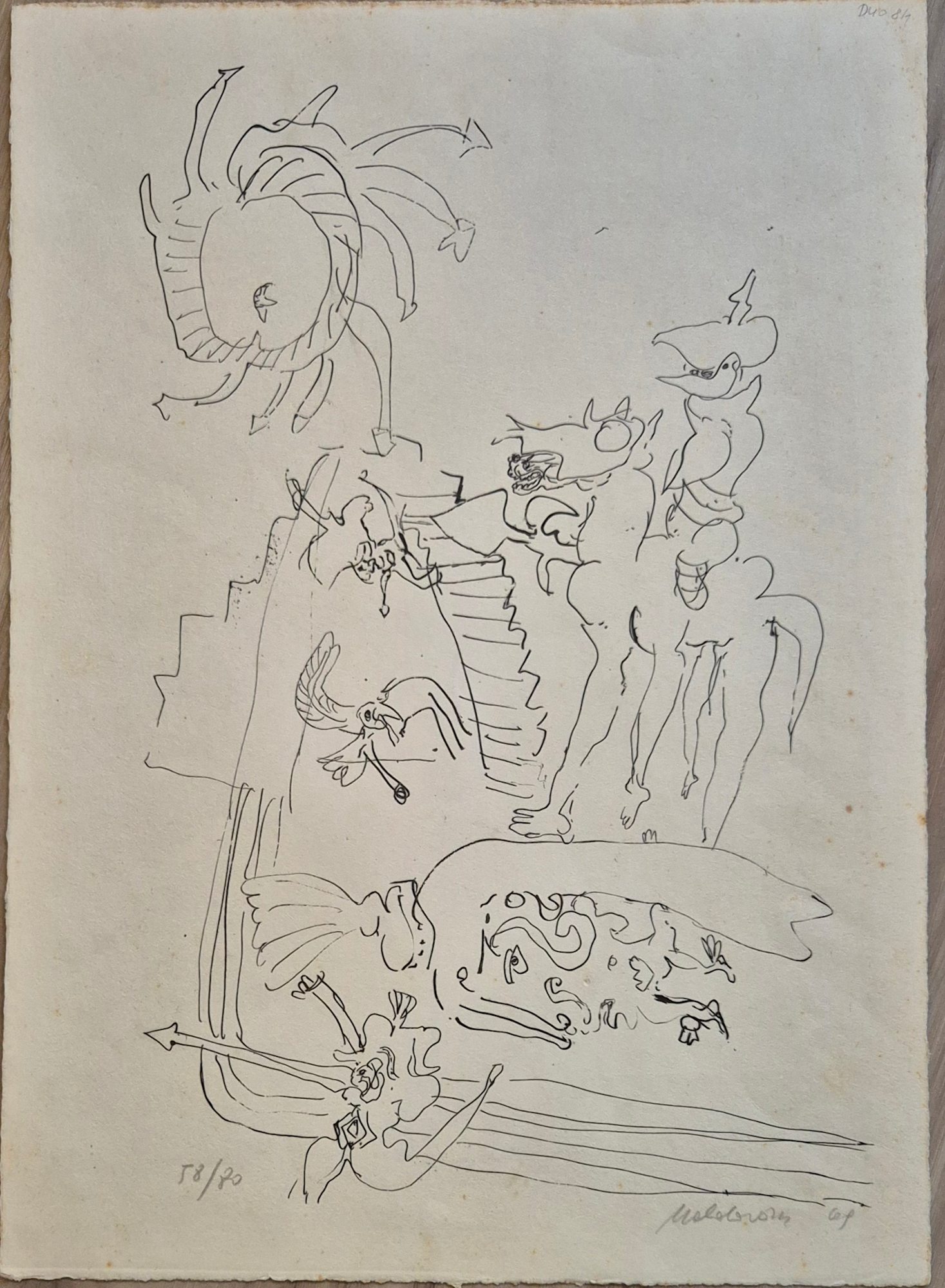 Kurt Moldovan (Wien 1918-1977) Ohne Titel, aus der Reihe: Alice im Wunderland, handsigniert: Moldovan, datiert: (19)69, nummeriert: 58/80, Lithographie auf festem Velin, Blattgröße ca. 53,2 x 38,2 cm