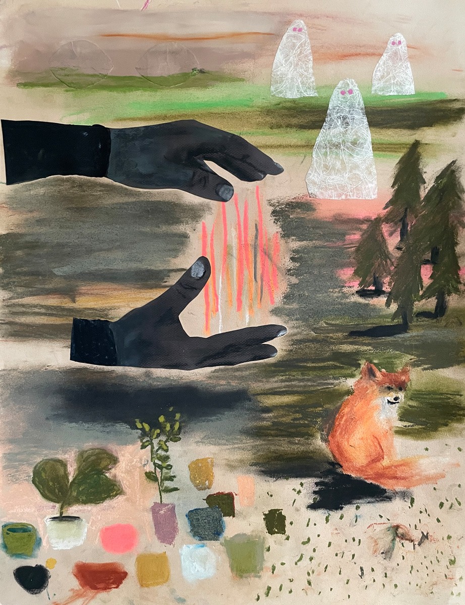 Acrylic, soft pastel and paper on paper