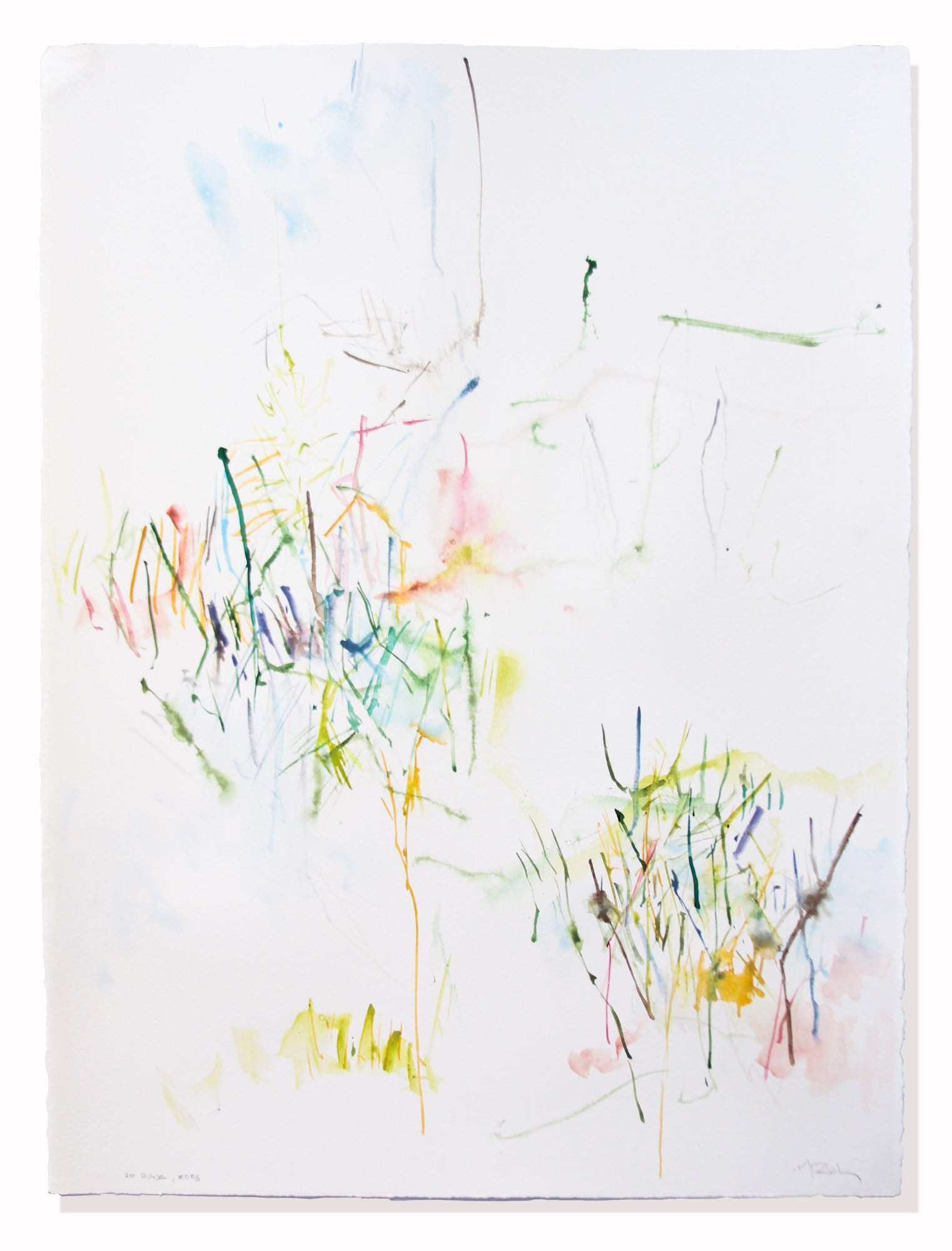 Japanese watercolor on 300lb Arches paper. Painted in the studio in Rehoboth, MA. Inspired by Eastern ink paintings of the landscape, this work is is soft and evocative of the landscape surrounding the studio.