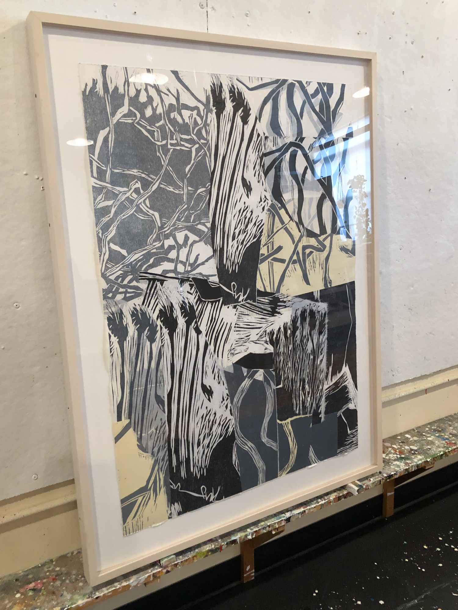 A Walk in the Fields, 2018, woodcut collage, 42 x 30 in