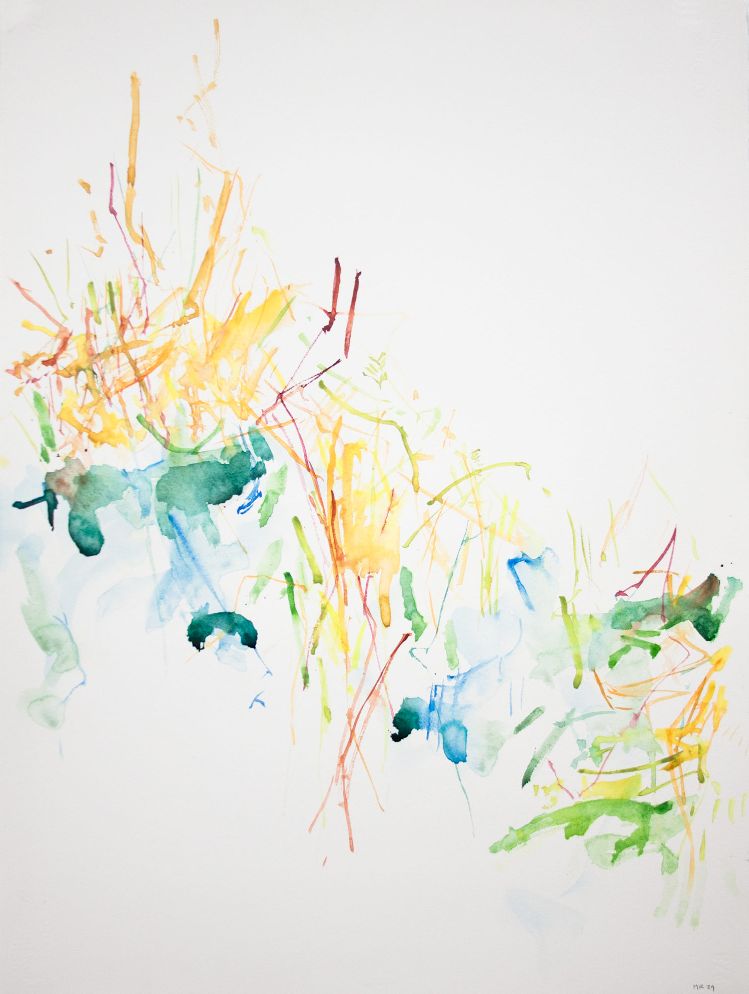The natural world, close to home and viewed from the studio, greatly influences my drawings and watercolors. Working without preconception and in an improvisational way, I treat the process of watercolor very much like a drawing in color. The new studio is surrounded by gardens with grasses occupying prominent positions around the house. They are my favorite plants in the garden, especially in the Fall when the sprout soft, brushy flowers on the top and then start to fade.