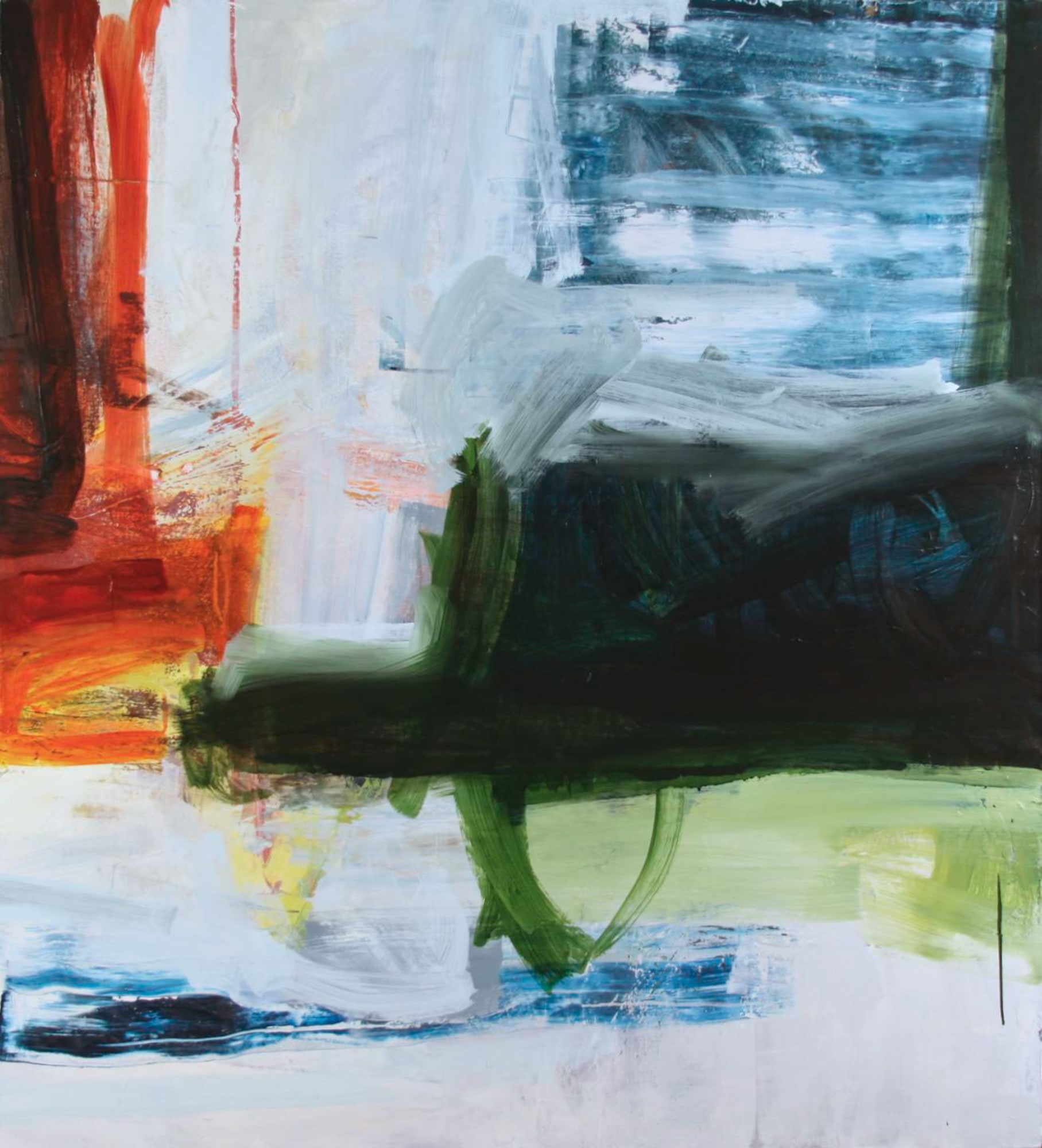 The sky the sea, the fog and the weather of Michael's native Nantucket Island is often suggested in his work. This painting was first painted in 2012 but sanded and repainted several times through 2014 when it reached it's final, most exuberant state.
