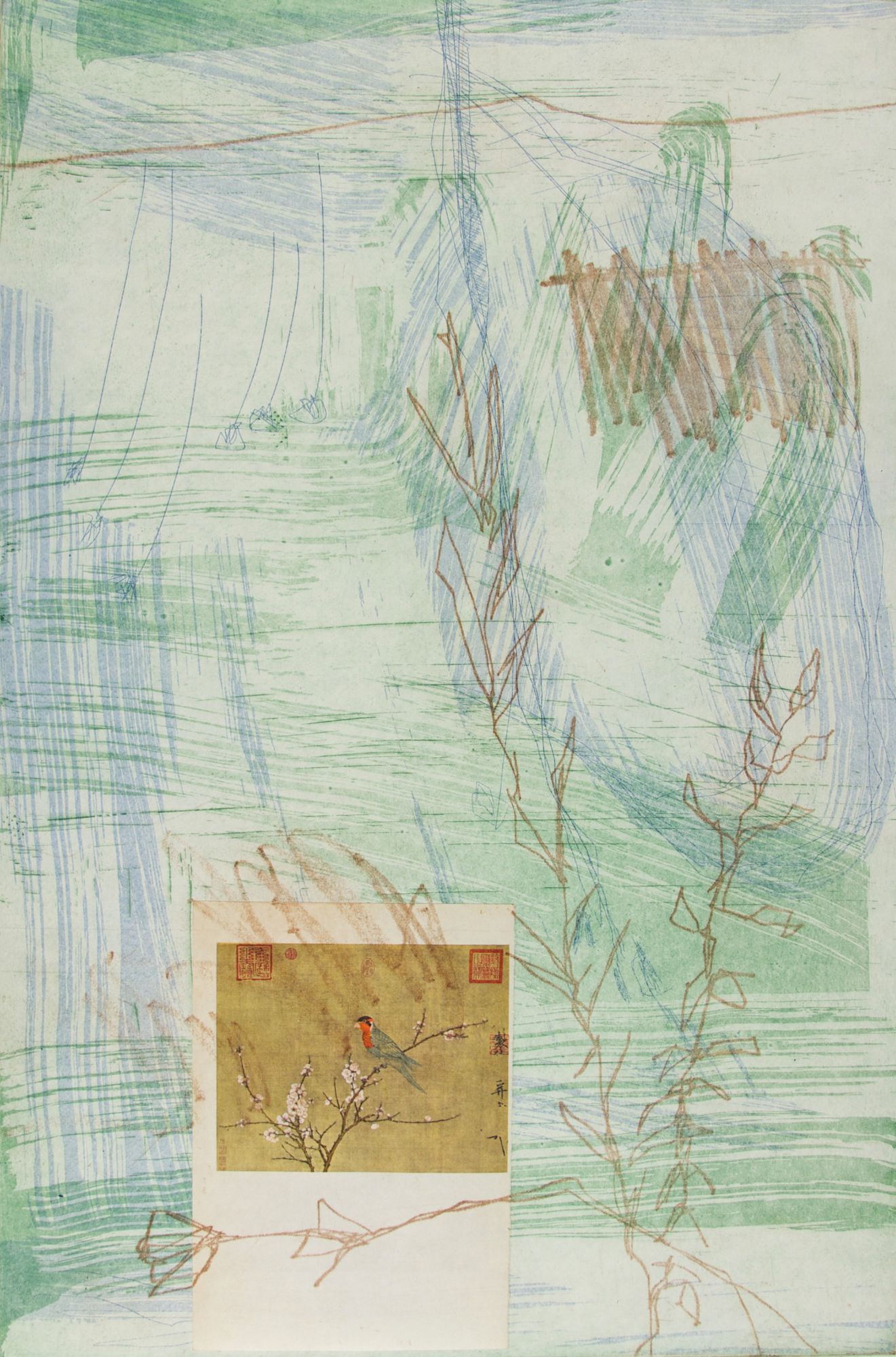 multi-plate, intaglio monoprint with chin-collé. Print size 18 x 12 in, paper size 22 x 15 in.
