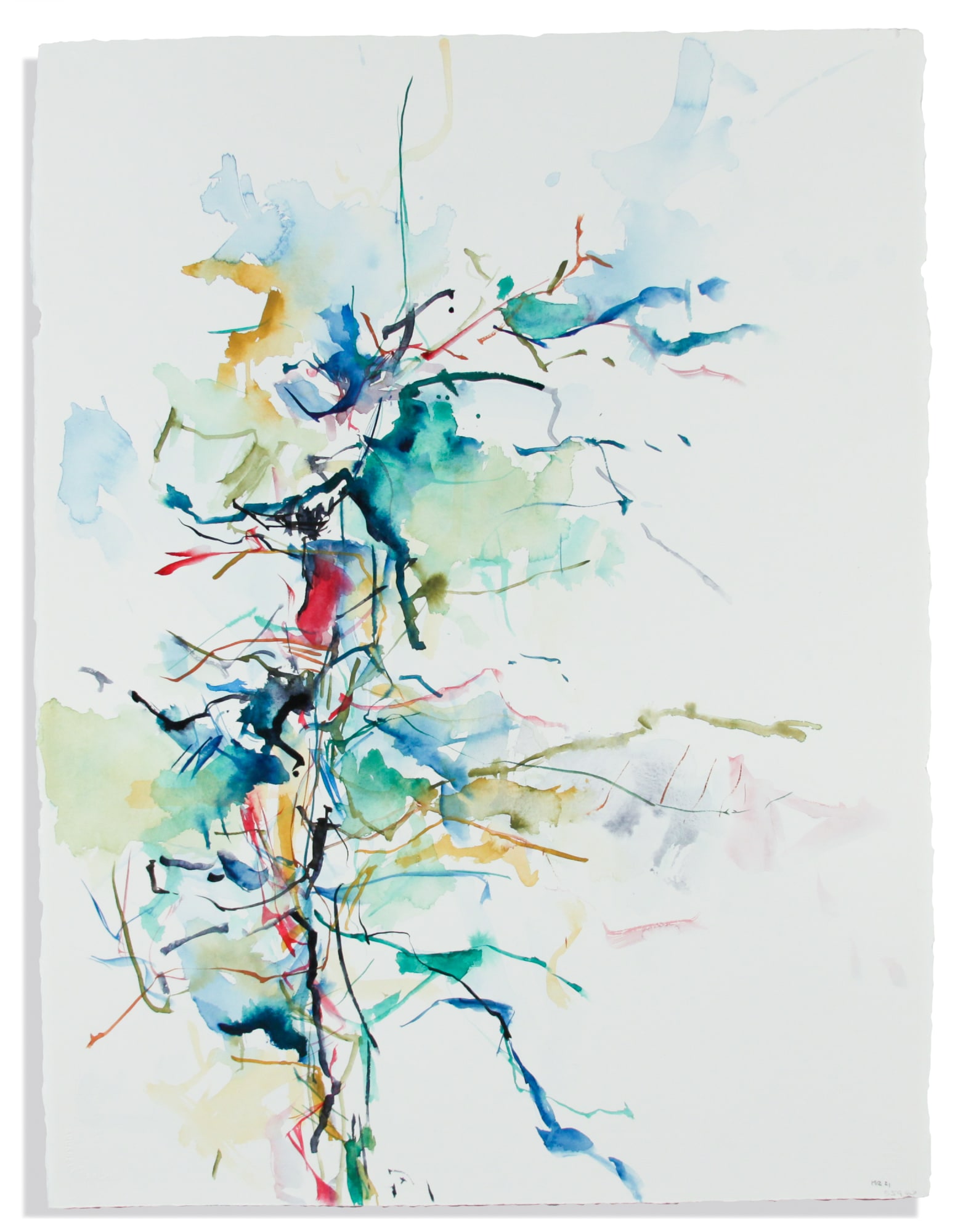 Japanese watercolor on 300lb Arches paper. Painted in the studio in Pawtucket, RI as a remembrance of the trees found in Orquevaux, France. Michael spent September of 2021 as an artist in residence in Orquevaux, much of the time working in the landscape. This work continues the ideas first pursued in France with abstraction through memory and invention added.