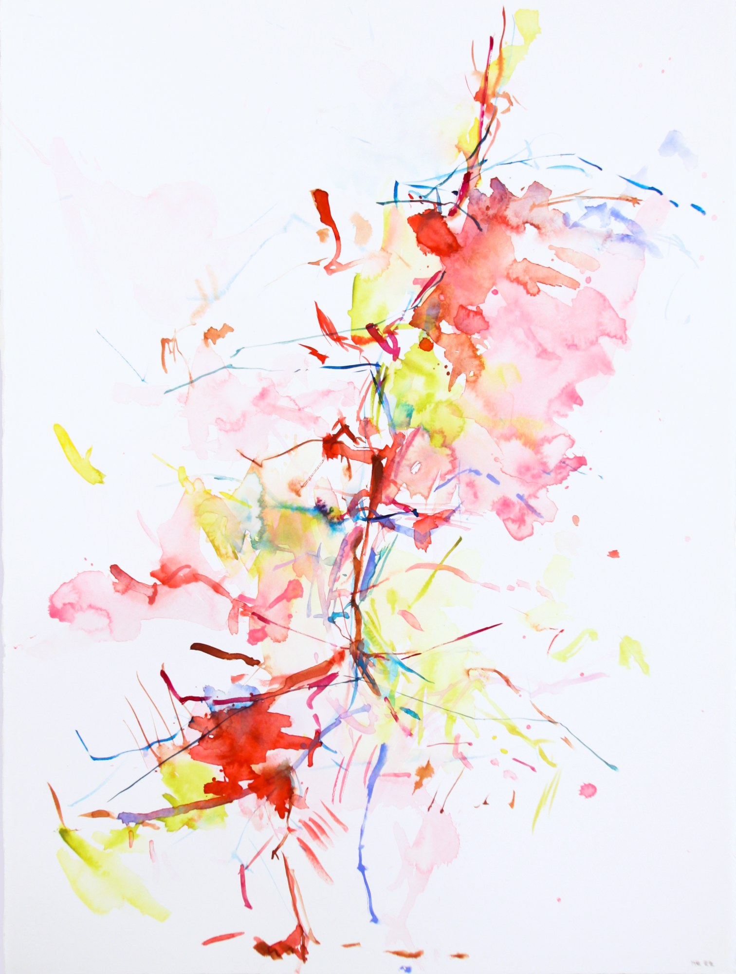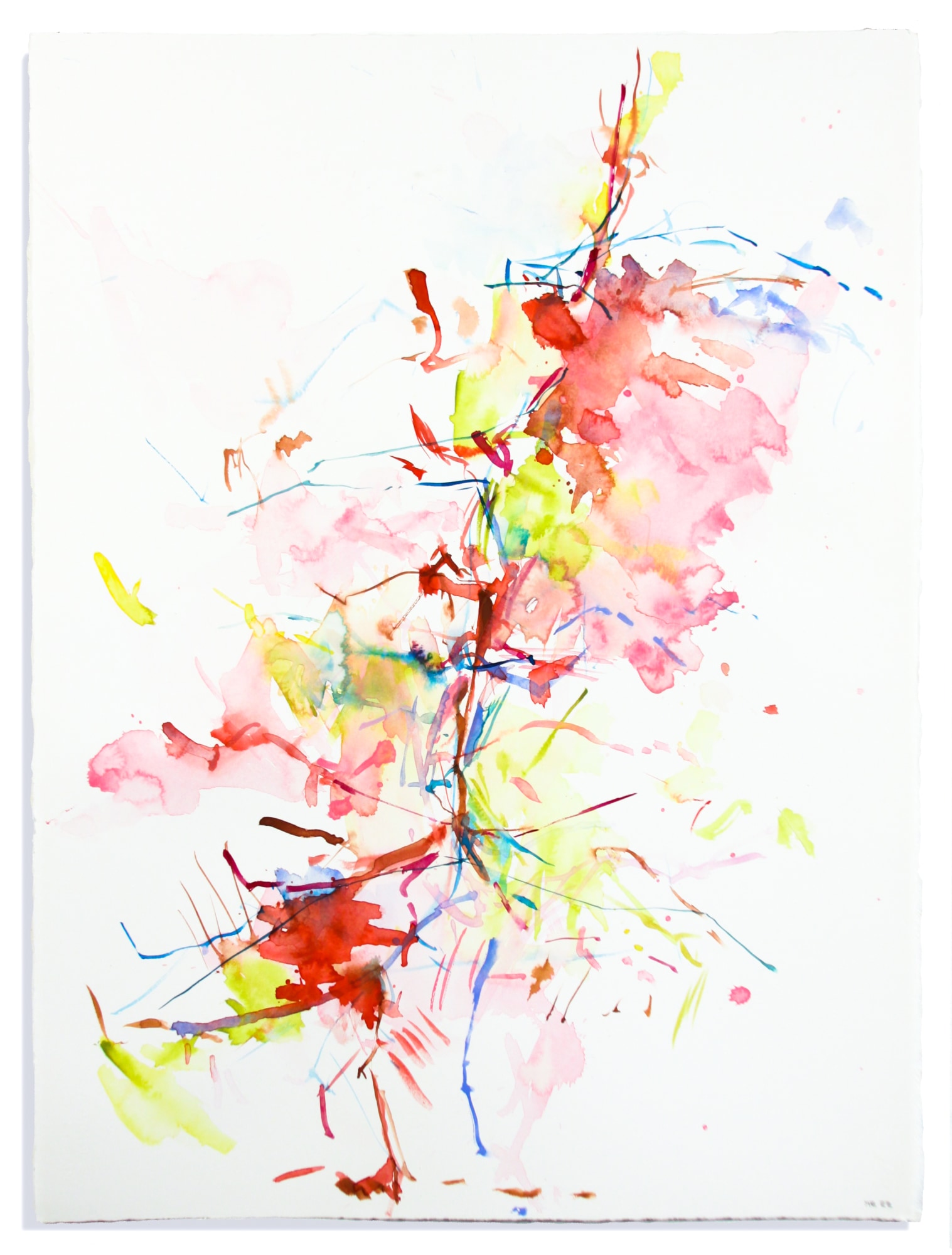Japanese watercolor on 300lb Arches paper. Painted in the studio in Pawtucket, RI as a remembrance of the trees found in Orquevaux, France. Michael spent September of 2021 as an artist in residence in Orquevaux, much of the time working in the landscape. This work continues the ideas first pursued in France with abstraction through memory and invention added.